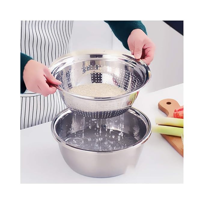 Transform your cooking experience with the 3-in-1 Stainless Steel Basin with Grater Vegetable Cutter, a versatile kitchen tool designed to save time, enhance efficiency, and keep your food preparation neat and organized. This multifunctional basin combines a stainless steel mixing bowl, a grater attachment, and a vegetable cutter in one compact set. Perfect for chopping, slicing, grating, and washing, it eliminates the need for multiple utensils and simplifies your cooking routine.
