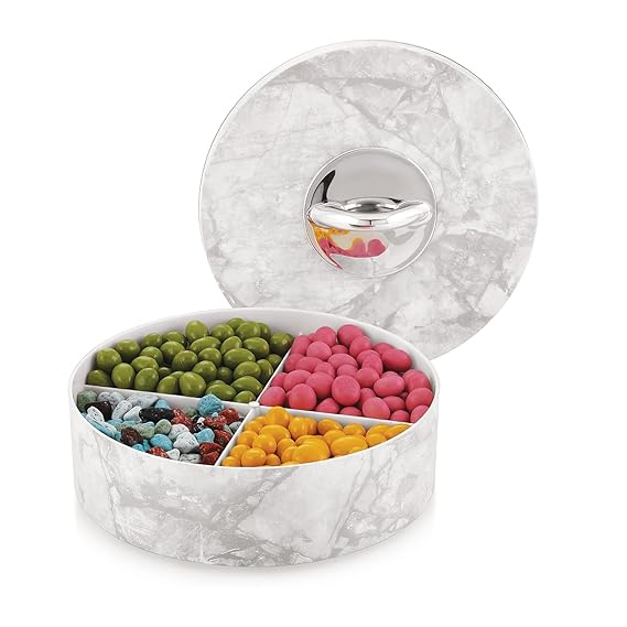 Spacious Compartments: 4 sections to store different dry fruits, nuts, or candies.