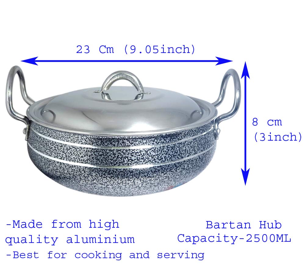 🍲 Aluminium Cook and Serve Kitchen Handi with Lid – Non-Stick Black, 2500 ml | Durable, Lightweight & Multi-Purpose Cookware