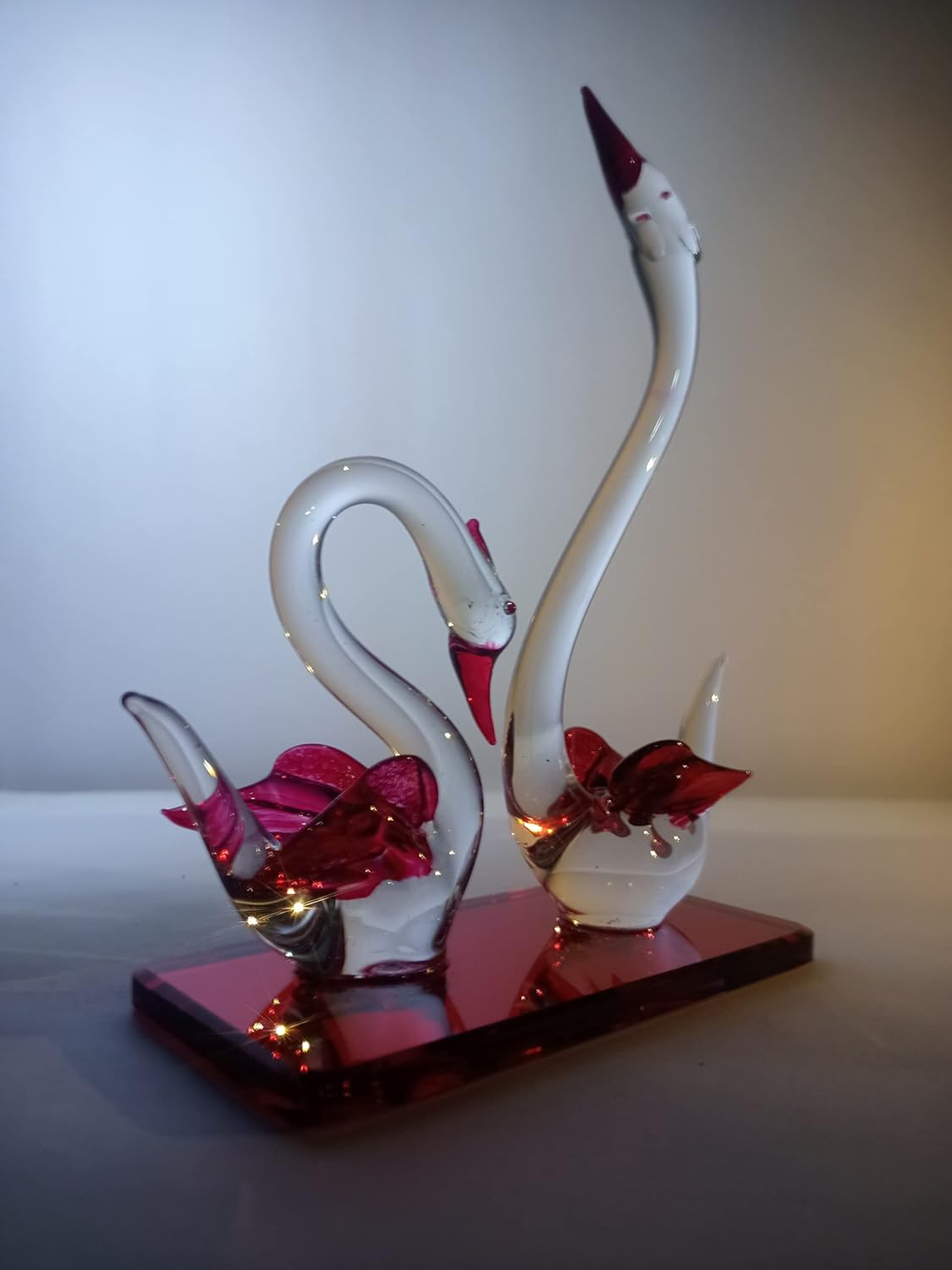 Enhance the charm of your interiors with this Attractive Bird Glass Showpiece, beautifully crafted to reflect elegance, love, and traditional artistry. Made from premium-quality glass, this decorative bird figurine features a rich red tone that adds warmth and sophistication to any space. Its refined craftsmanship and glossy crystal-like finish make it a standout décor accent for modern as well as traditional homes.