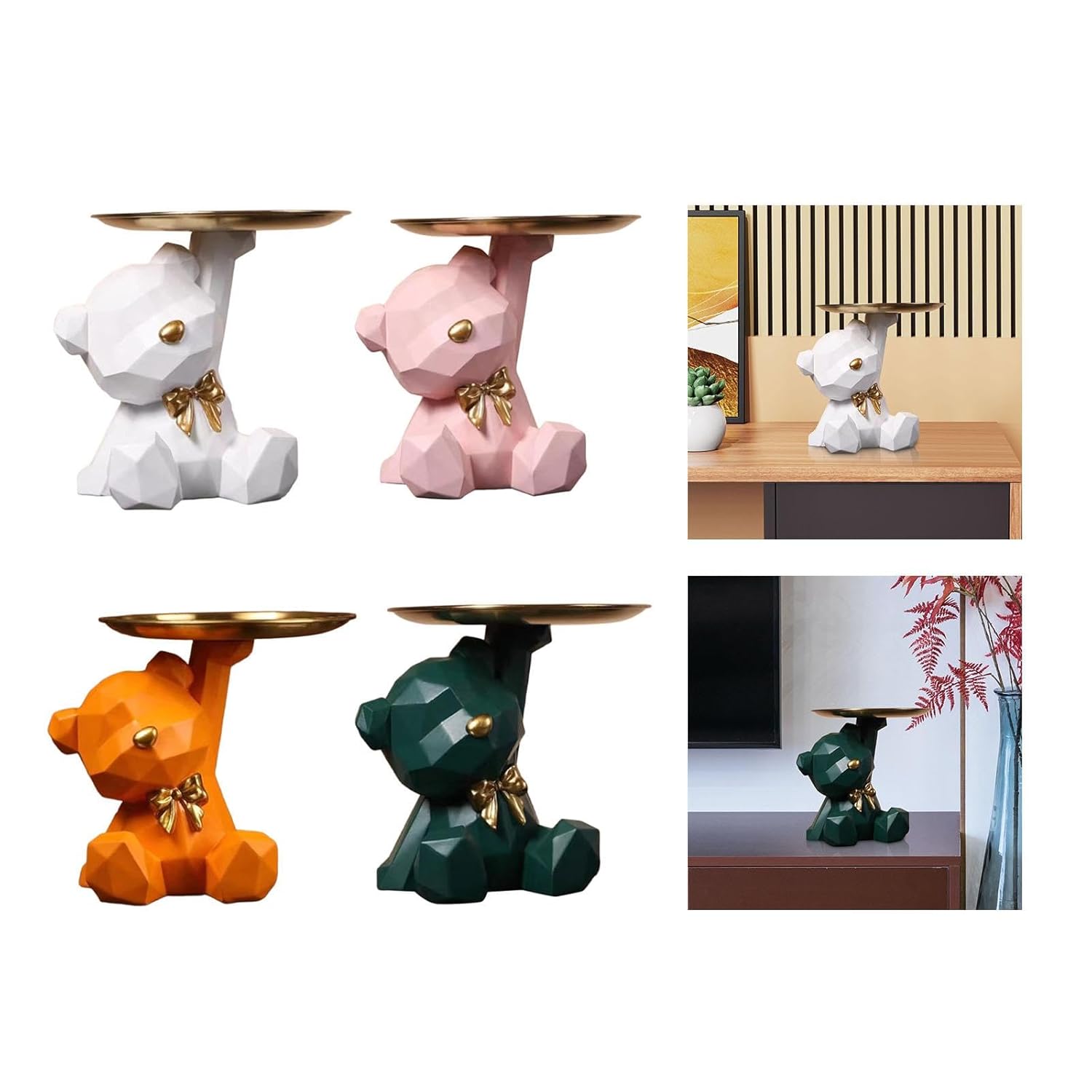 Designed in a compact yet practical size of approximately 20 × 18 × 15 cm (7.87 × 7.09 × 5.91 inches), the bear statue tray is ideal for holding a variety of small items. Use it to store keys, coins, jewelry, watches, candies, chocolates, hair accessories, earphones, or other everyday sundries. The tray keeps essentials within easy reach while preventing clutter on your table or countertop.