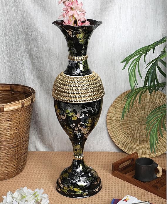 This tall metal flower vase is more than just a decorative item—it’s a statement of style and sophistication. Its bold size, sleek black color, and handcrafted design transform ordinary corners into elegant spaces. Pair it with vibrant flowers or neutral tones to create a stunning contrast, or match it with other décor elements for a cohesive look.