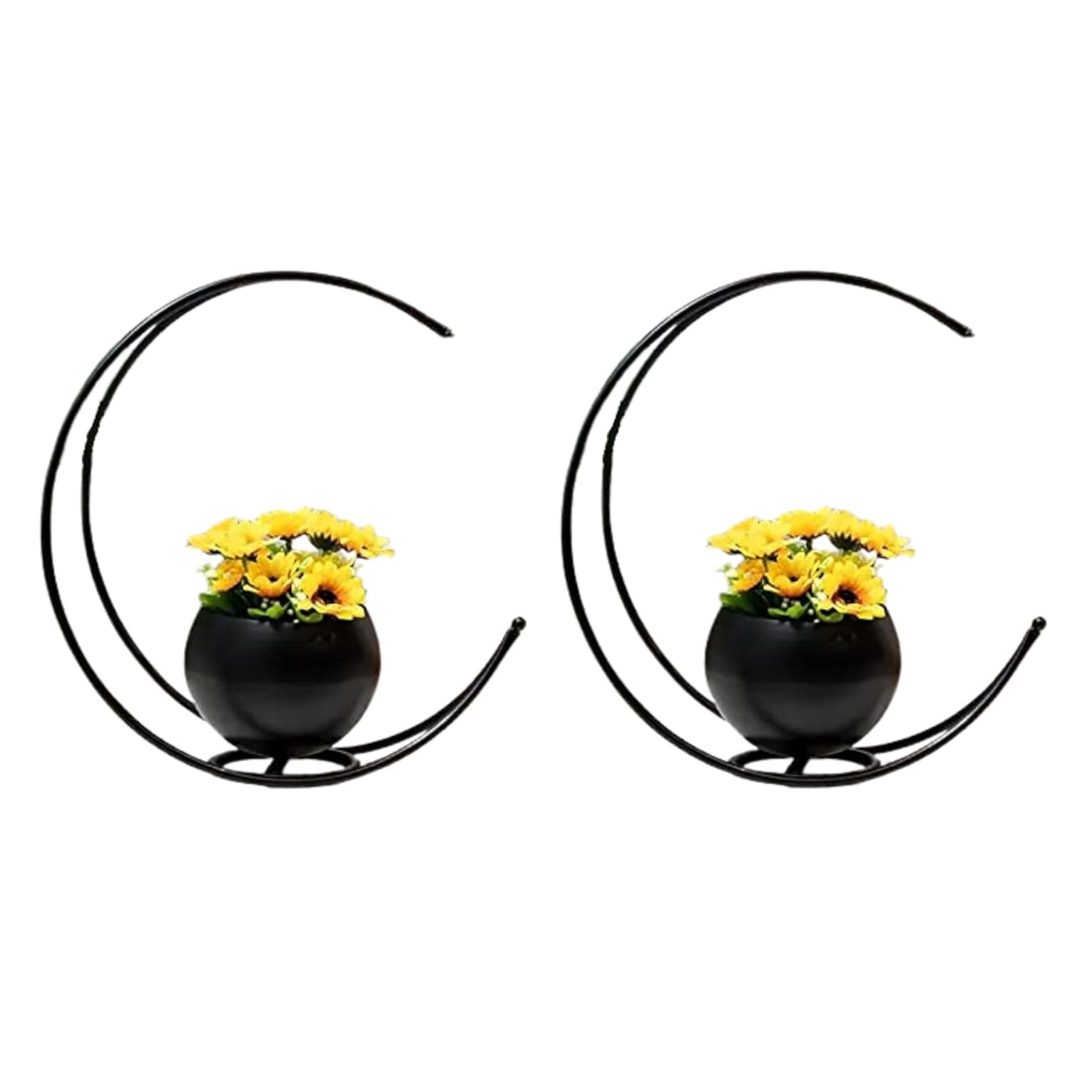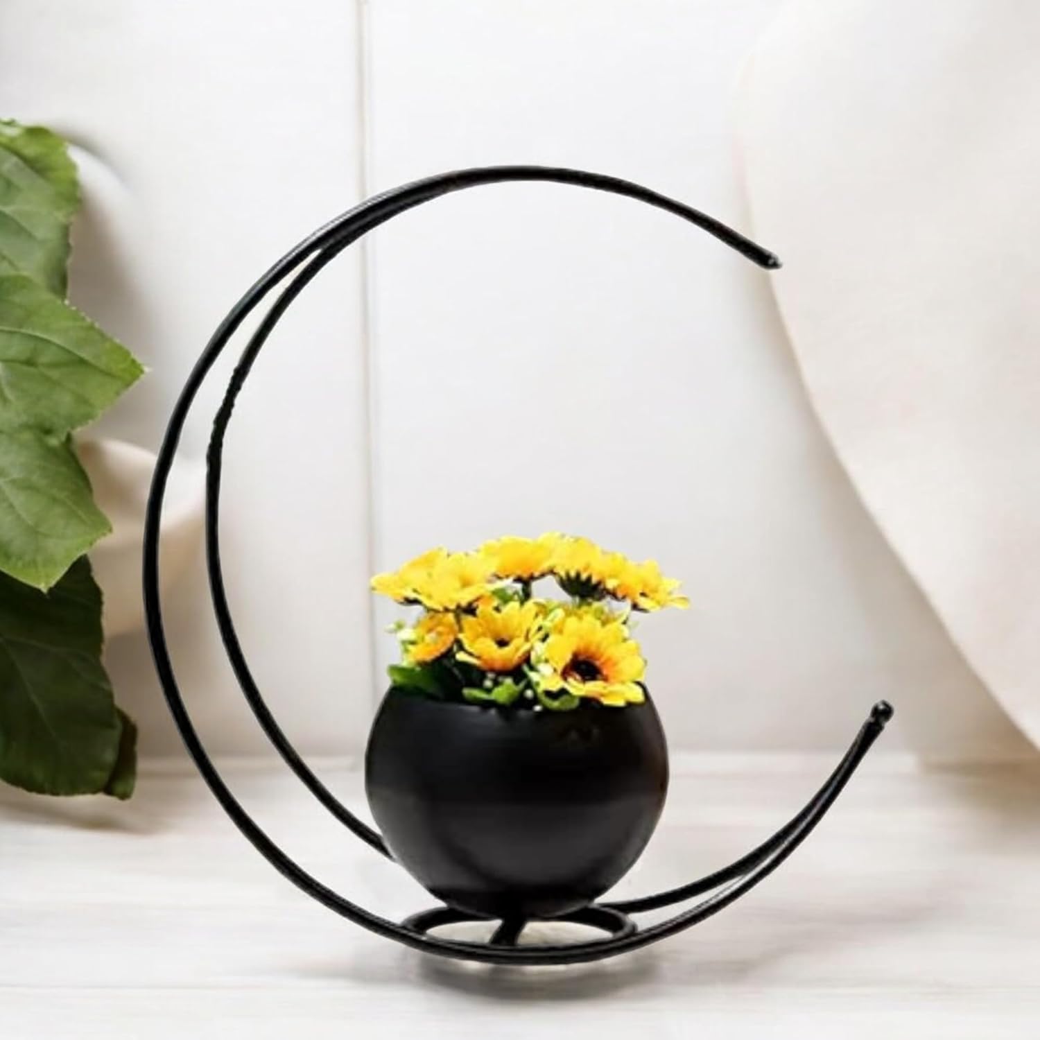 This beautifully crafted metal flower vase features a unique moon-shaped geometric design that adds a modern and artistic touch to any space. Its eye-catching structure makes it a perfect statement piece for contemporary interiors.