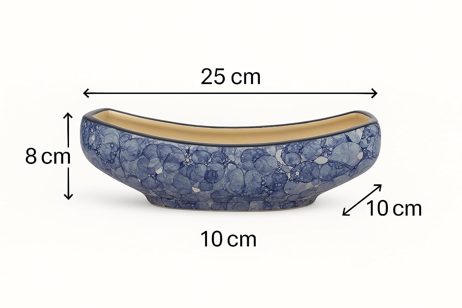 Boat Shaped Blue Bubble Oval Ceramic Pot Planter – Contemporary Designer Ceramic Planter for Home, Office & Tabletop Décor