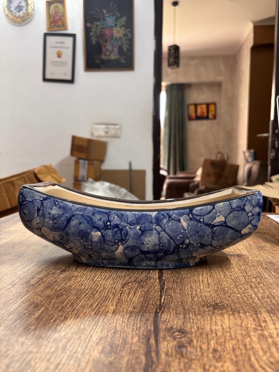 SKU: Boat-Shaped-Blue-Bubble-Oval-Ceramic-Pot-Planter-01198
