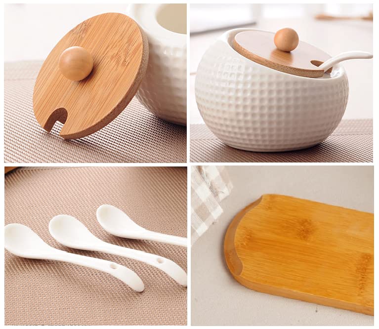 The ceramic condiment jar set is designed with both aesthetics and functionality in mind. The white ceramic jars paired with natural bamboo lids provide a minimalist, modern look that complements any kitchen décor. Each jar features a removable lid and mini spoon, making it easy to access your favorite spices without making a mess.