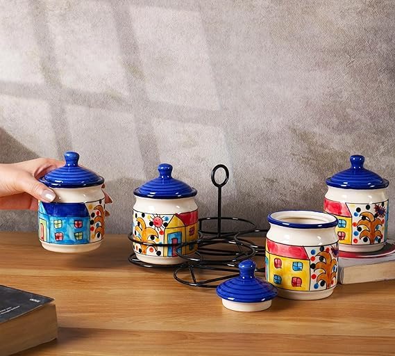 The traditional achaar barni design brings back memories of heritage kitchens while blending beautifully with modern décor. Their timeless look makes them suitable for both kitchen shelves and dining tables.