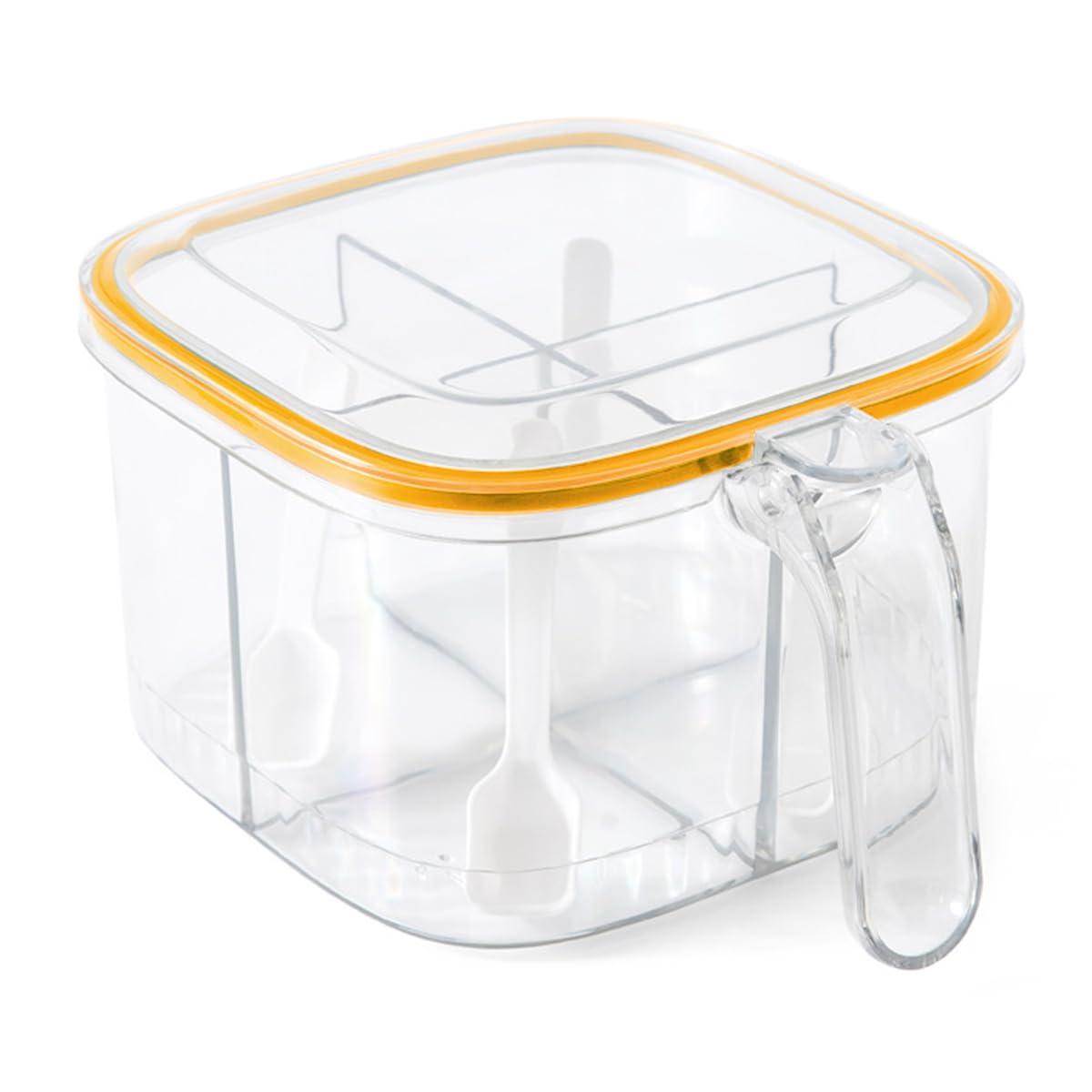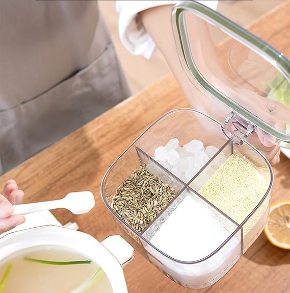 Tired of dealing with messy spice racks or unlabelled jars? The Clear Seasoning Storage Box offers a smart 4-in-1 compartmental design, allowing you to store up to four different seasonings or ingredients in one elegant container. Each compartment has its own spoon and lid, so there’s no flavor mixing or contamination.