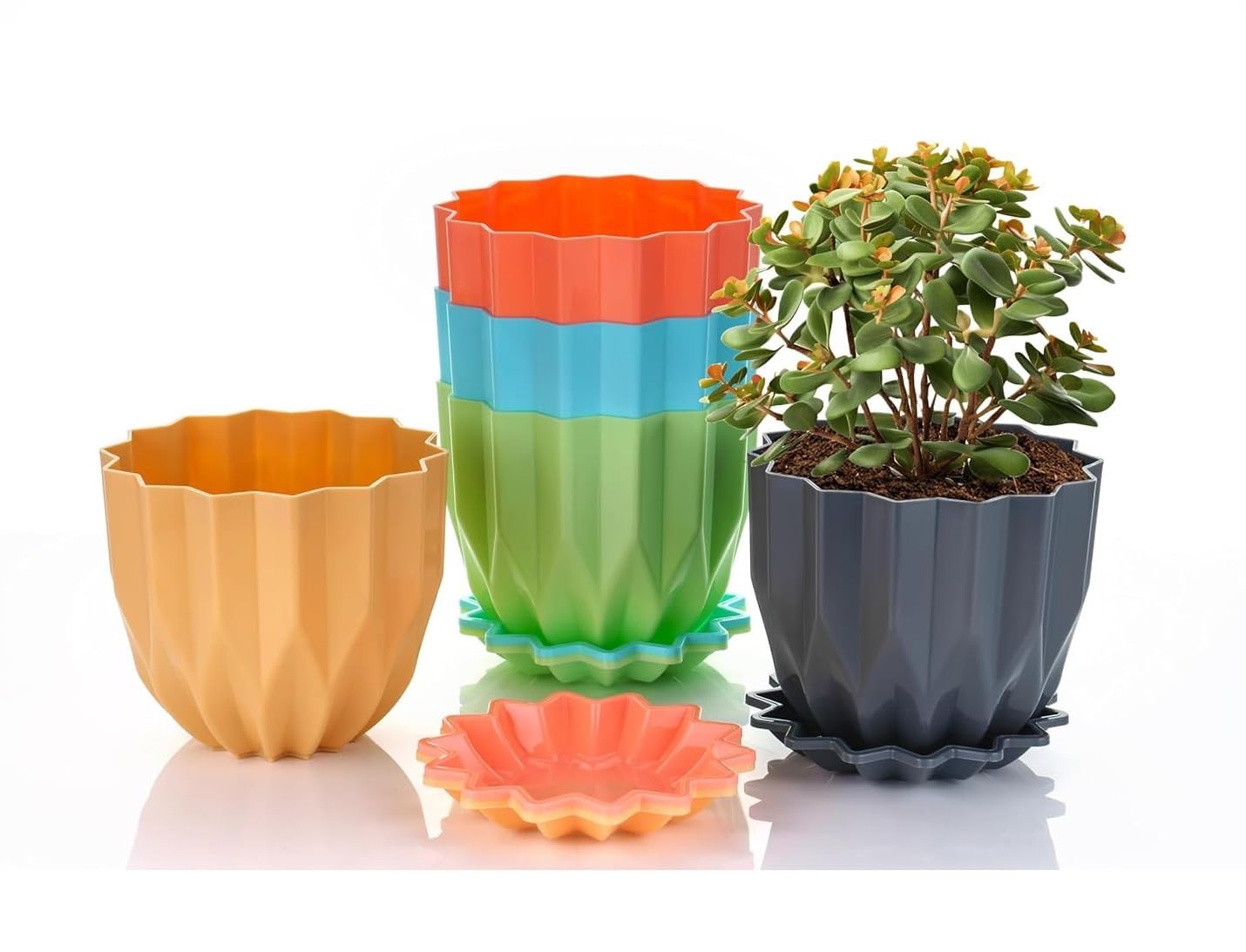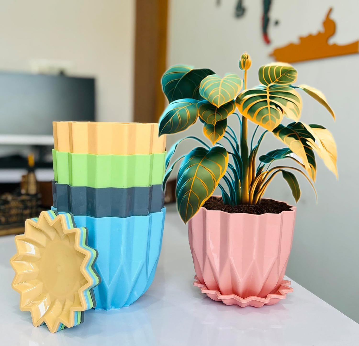 Crystal Look Plastic Flower Pots with Tray – Stylish, Durable & Perfect for Indoor Gardening