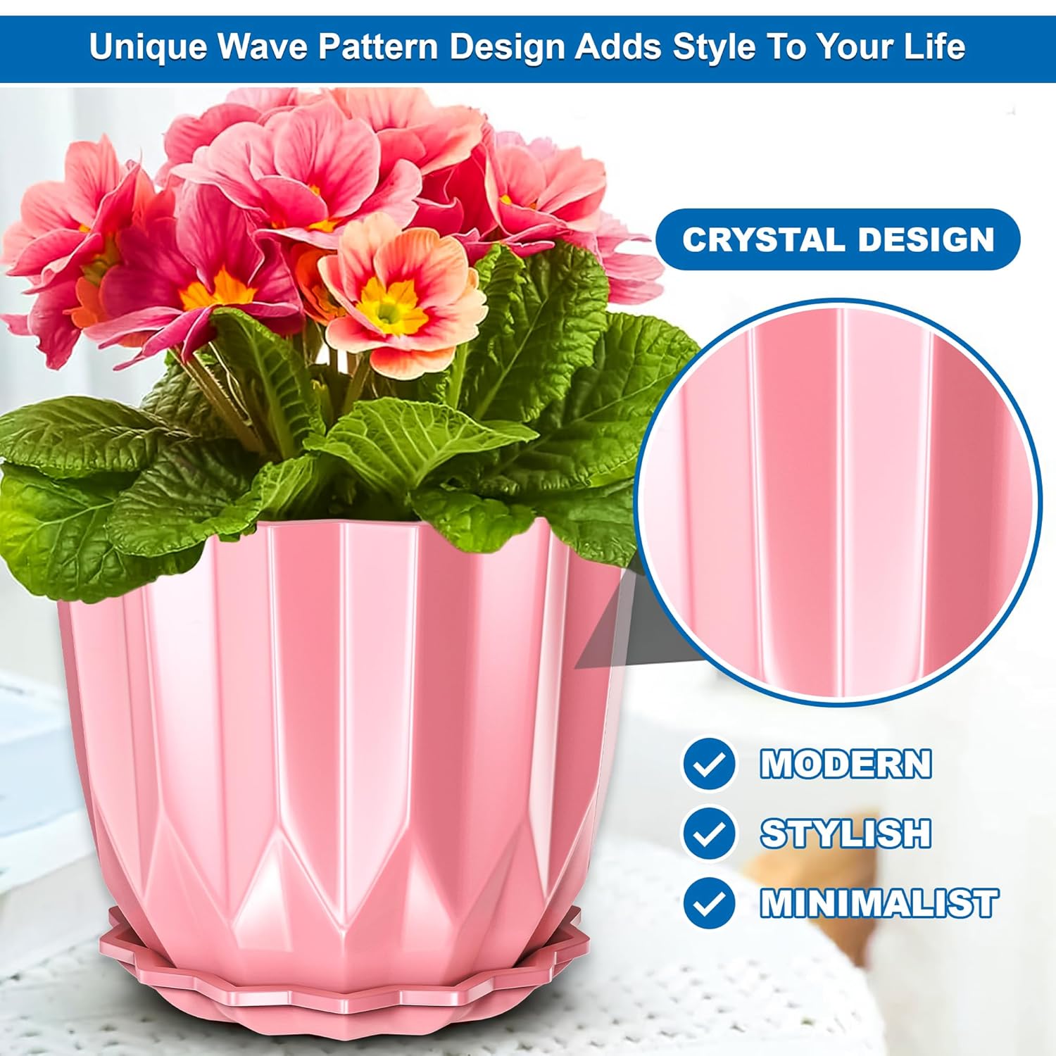 Featuring a sleek crystal-look pattern and minimalist aesthetic, this planter effortlessly complements any home or office décor, adding a touch of elegance and contemporary charm to your plant displays.