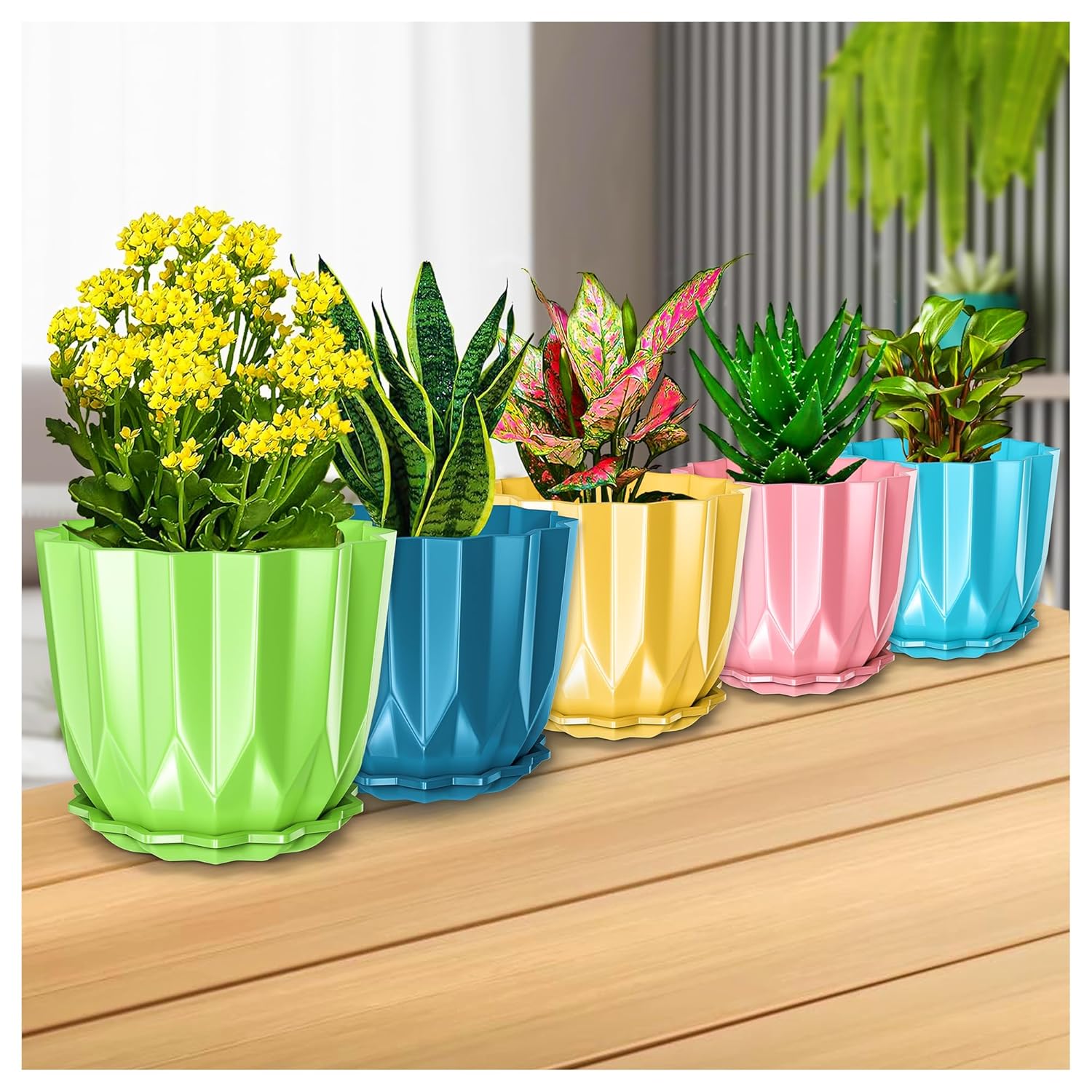 Designed with a 6-inch depth and 5.2-inch height, this crystal-look planter is ideal for a variety of small to medium houseplants such as aloe vera, snake plants, peace lilies, ZZ plants, orchids, and succulents. Its trendy multi-colour finish adds a lively touch to spring and year-round décor.