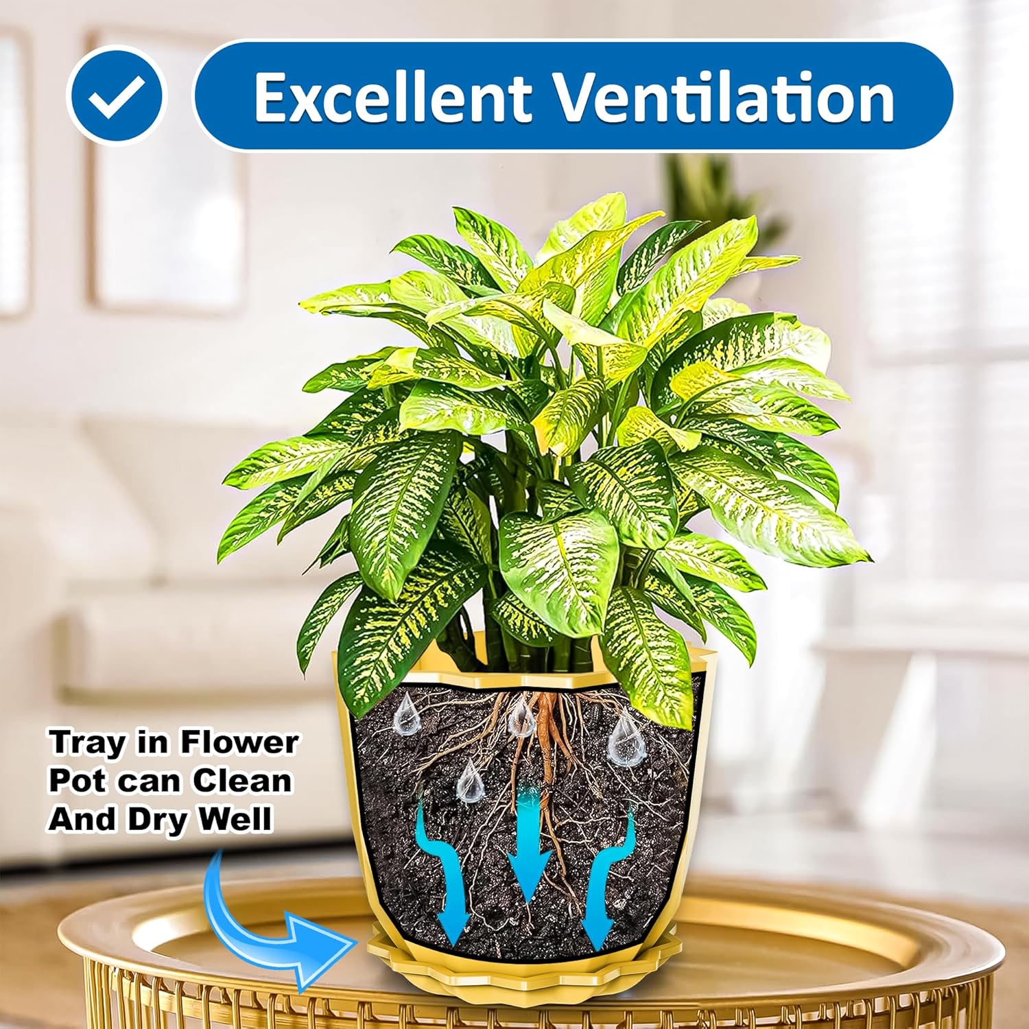 Equipped with an easy-drain movable tray and multiple drainage holes, this pot ensures proper water flow to prevent overwatering and root rot. The attached tray efficiently captures excess water, keeping your floors and shelves clean—perfect for indoor gardening.