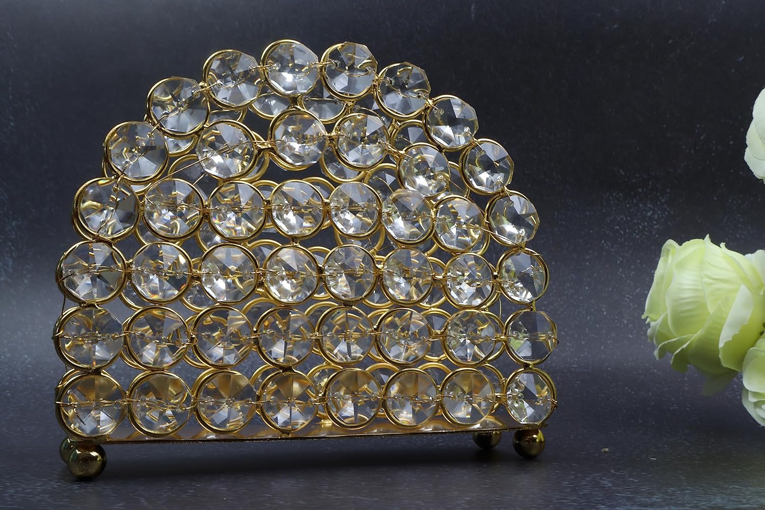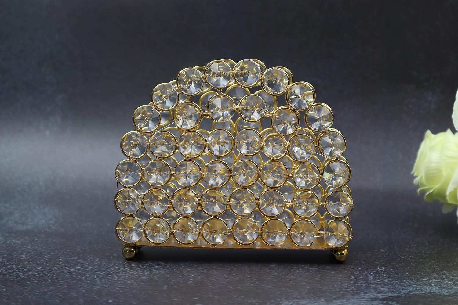 Constructed from high-quality mild steel, this napkin paper holder offers excellent durability and stability. The strong metal frame ensures the organizer remains sturdy even with frequent use, while the rust-resistant finish helps maintain its elegant appearance over time. The carefully fixed K9 crystals are designed to stay intact, ensuring long-lasting shine and charm. With a solid weight of 350 grams, the holder stays firmly in place without slipping or tipping.