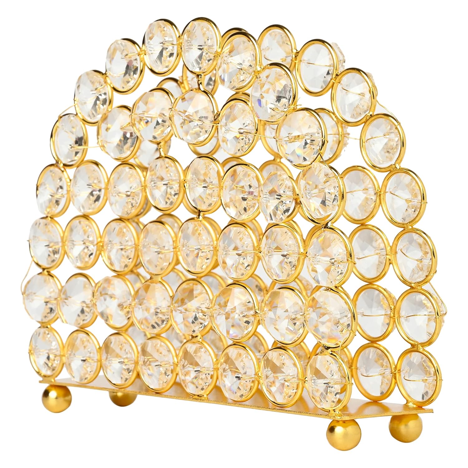 This vertical crystal napkin holder is designed to stand out. The shimmering K9 crystals reflect light beautifully, creating a sparkling visual effect that complements both modern and classic interiors. The rich gold finish adds a premium look, making it not just a functional accessory but also a decorative tabletop accent. Ideal for those who appreciate stylish home décor, this napkin organizer seamlessly blends luxury with everyday usability.