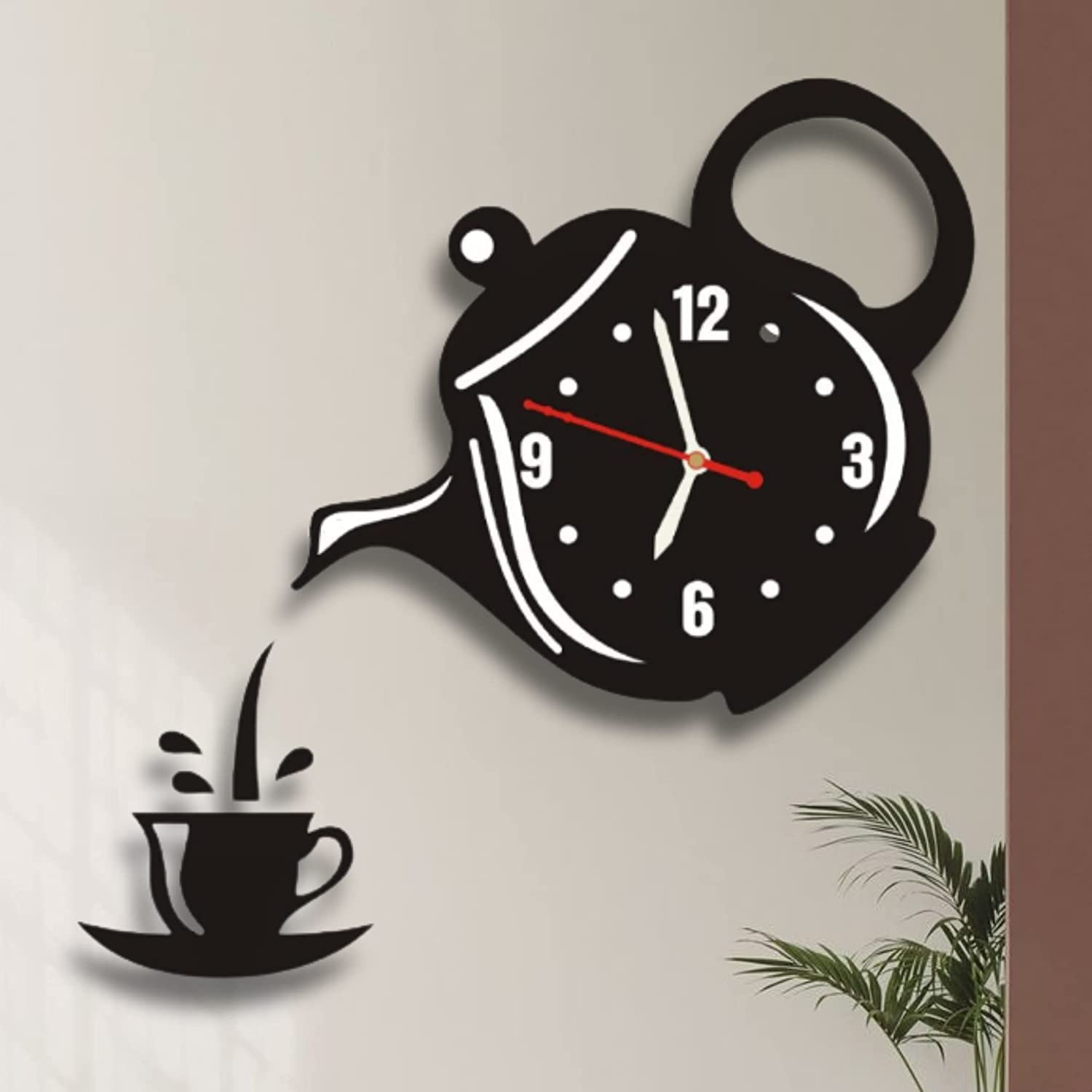 The standout feature of this wall clock is its unique teapot-and-cup design, which brings creativity and charm to any wall. Unlike ordinary wall clocks, this timepiece serves as both a functional clock and a decorative accent. The design reflects the love for tea and coffee, making it an ideal addition for kitchens, dining areas, cafés, or tea corners.