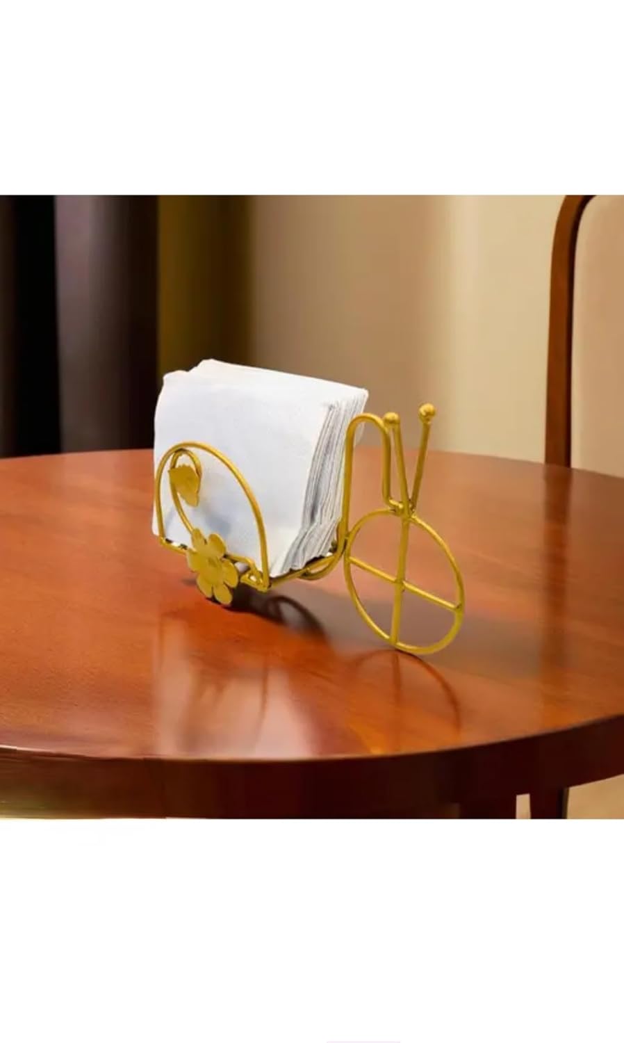 Featuring a unique cycle rickshaw–inspired design with elegant detailing, this napkin holder adds charm and character to kitchen counters, dining tables, restaurants, cafés, and office pantries.