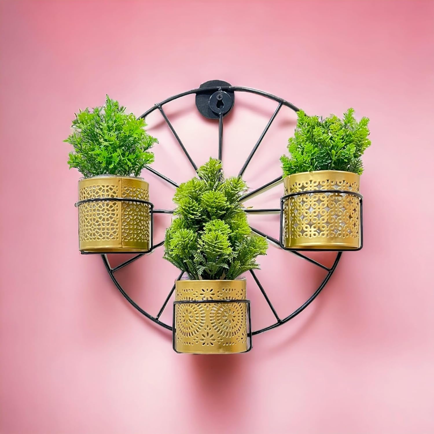 Distinctive Wheel-Shaped Design: This stylish wall-hanging planter features an elegant wheel-shaped metal stand that instantly adds charm and a modern Art Deco touch to any wall. Its unique structure makes it a standout décor element suitable for living rooms, balconies, hallways, offices, and patios.