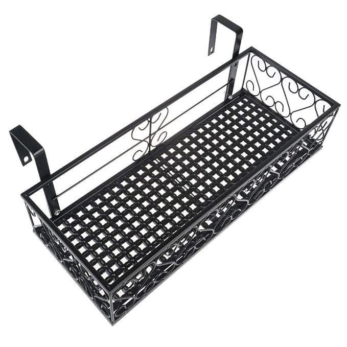Decorative Balcony Railing Planter Box – Metal | Rust Resistant Iron | Black | Railing & Wall Mounted Flower Box for Home Garden Décor