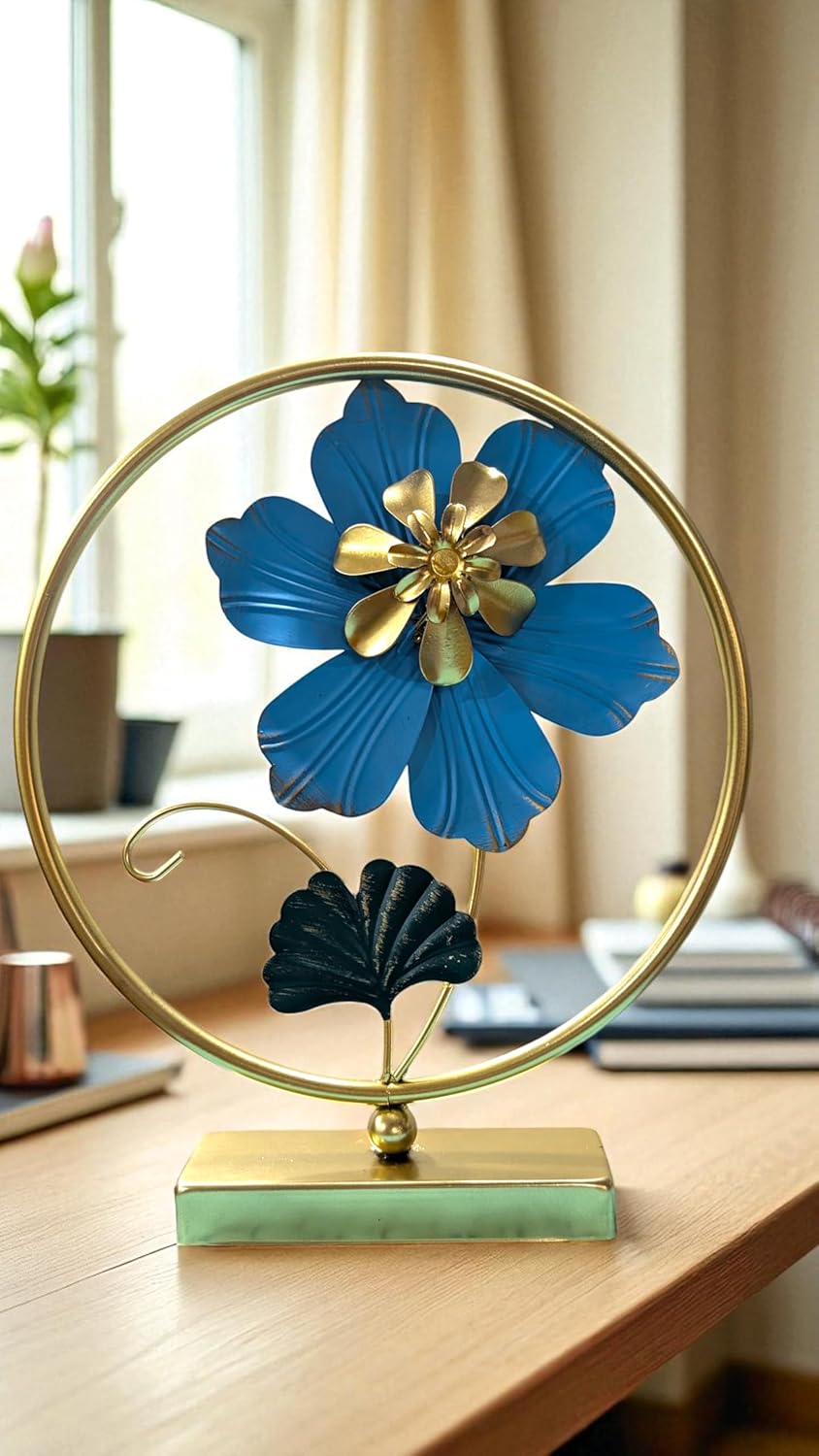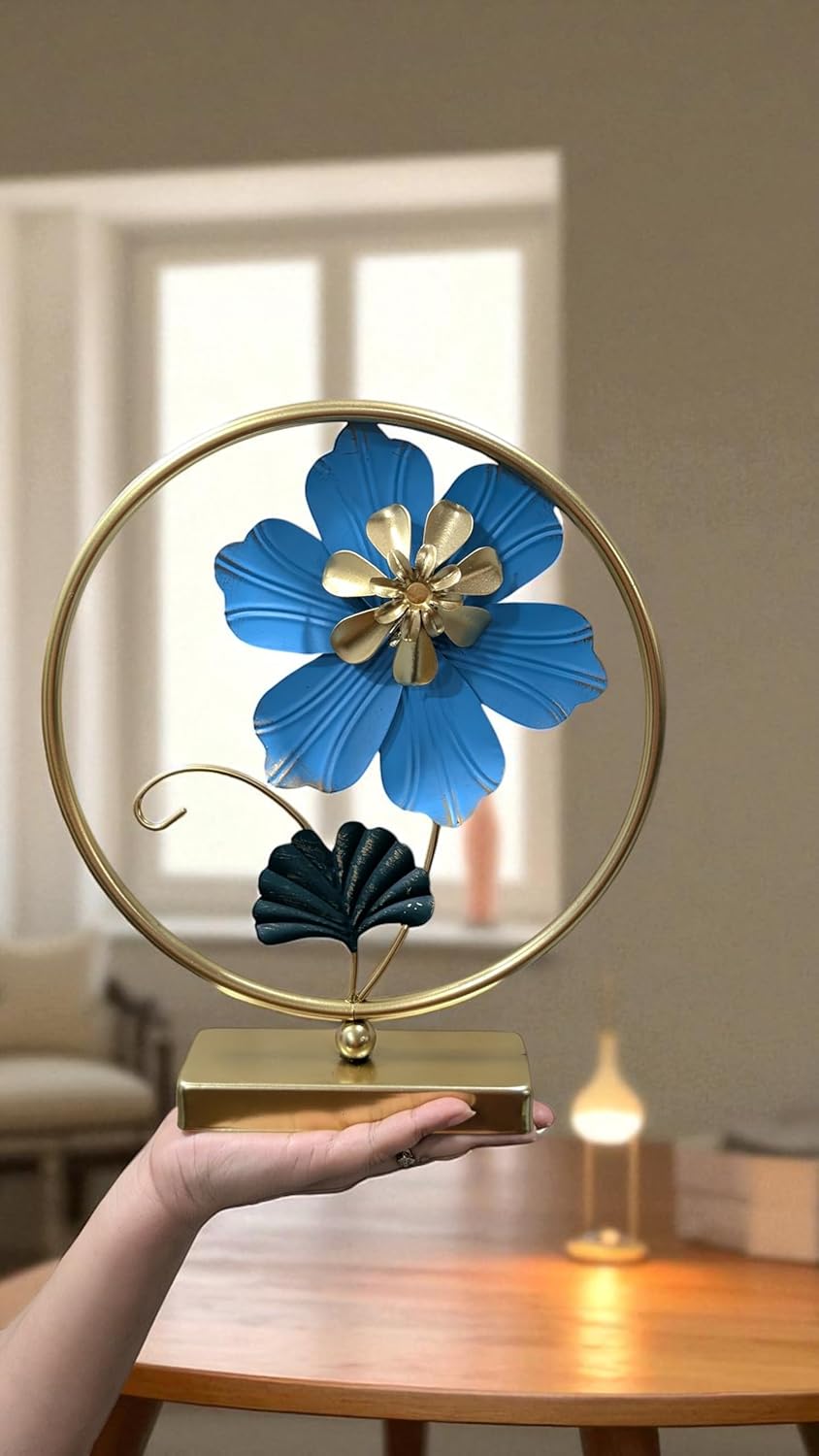 Crafted from high-quality metal, this showpiece offers durability along with a luxurious aesthetic. The carefully sculpted flower and leaf elements reflect fine workmanship, creating a décor piece that instantly elevates the ambience of any room. Whether placed on a coffee table, console, office desk, or shelf, it draws attention and admiration effortlessly.