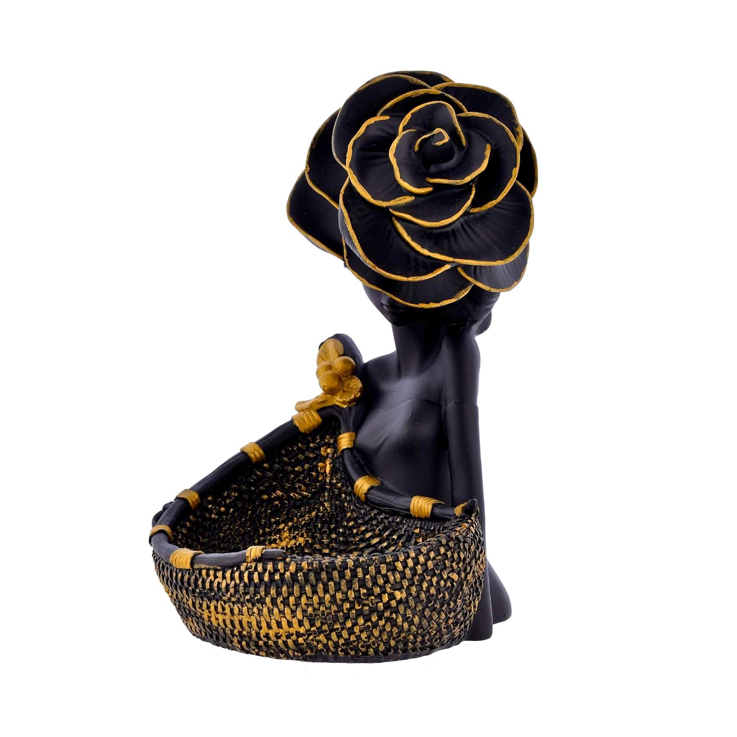 Decorative Black Lady with Basket Showpiece – Elegant Resin Figurine for Stylish Home Decor