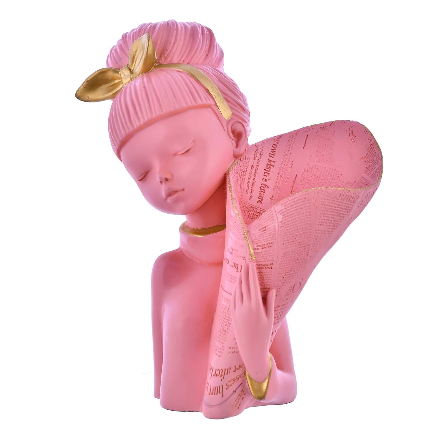 Decorative Flower Pink Lady Face with Basket Statue – Elegant Art Deco Resin Showpiece for Home & Gifting