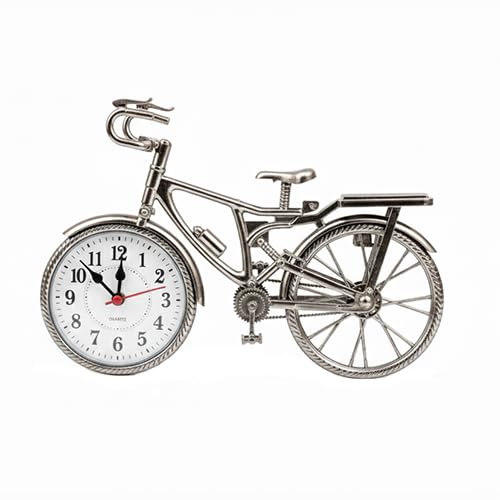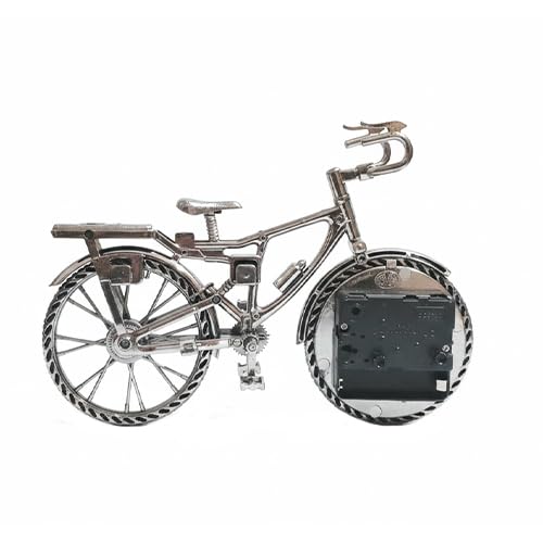 The intricate detailing of the bicycle components reflects careful craftsmanship, giving the clock a polished and well-finished appearance despite its compact size.
