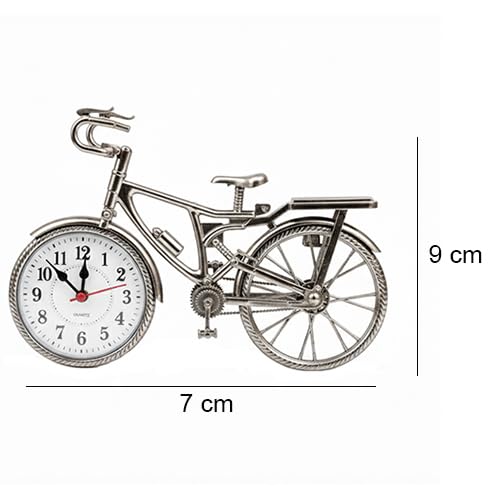Designed to stand out, this silver-finished bicycle clock instantly enhances the visual appeal of any space. Whether placed on a study table, office desk, shelf, or mantel, it acts as both a reliable clock and an eye-catching showpiece. Its compact size allows for easy placement without occupying much space, making it ideal for small desks and display areas.