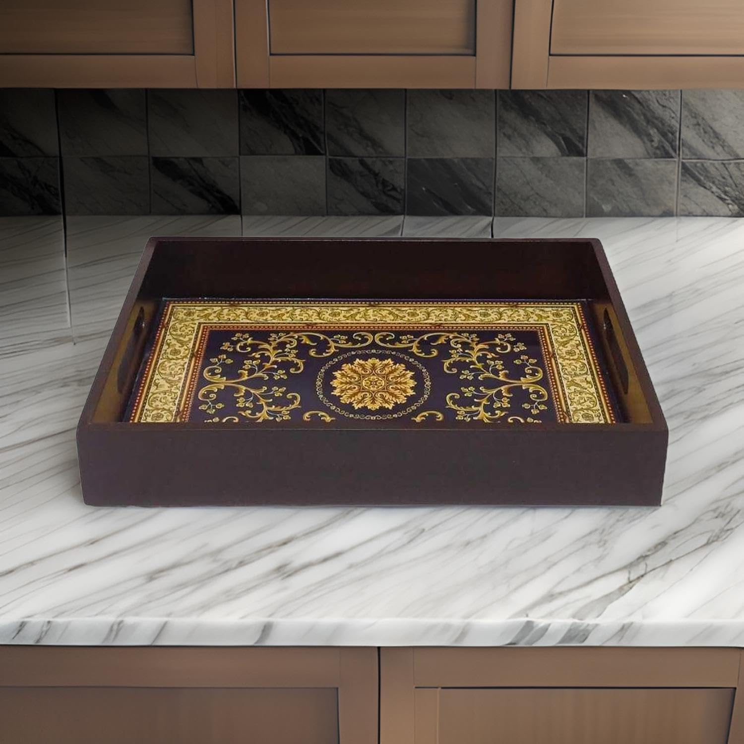 This elegant brown wooden tray is not just for serving—it’s a multi-utility accessory that serves countless purposes: