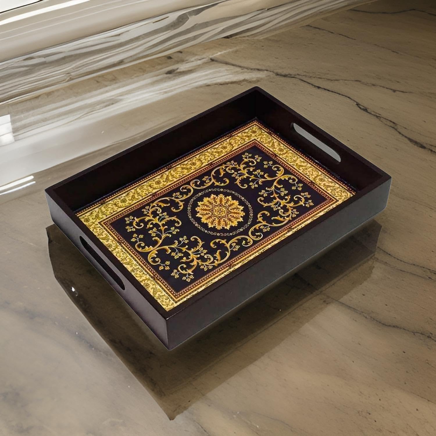 With its sleek black-brown finish, smooth edges, and ergonomic handles, this designer wooden tray not only improves your serving convenience but also enhances your home décor with refined charm. Its premium construction ensures long-lasting performance, making it a reliable choice for daily use as well as special occasions.