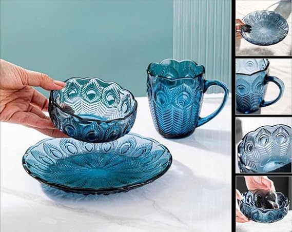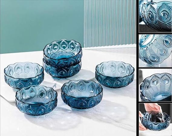 The blue transparent finish adds a refreshing and luxurious appeal, making this set a must-have for those who appreciate fine tableware. Whether you’re enjoying a quiet dessert at home or hosting a festive gathering, this glass bowl set enhances the beauty of your table while reflecting your refined taste.