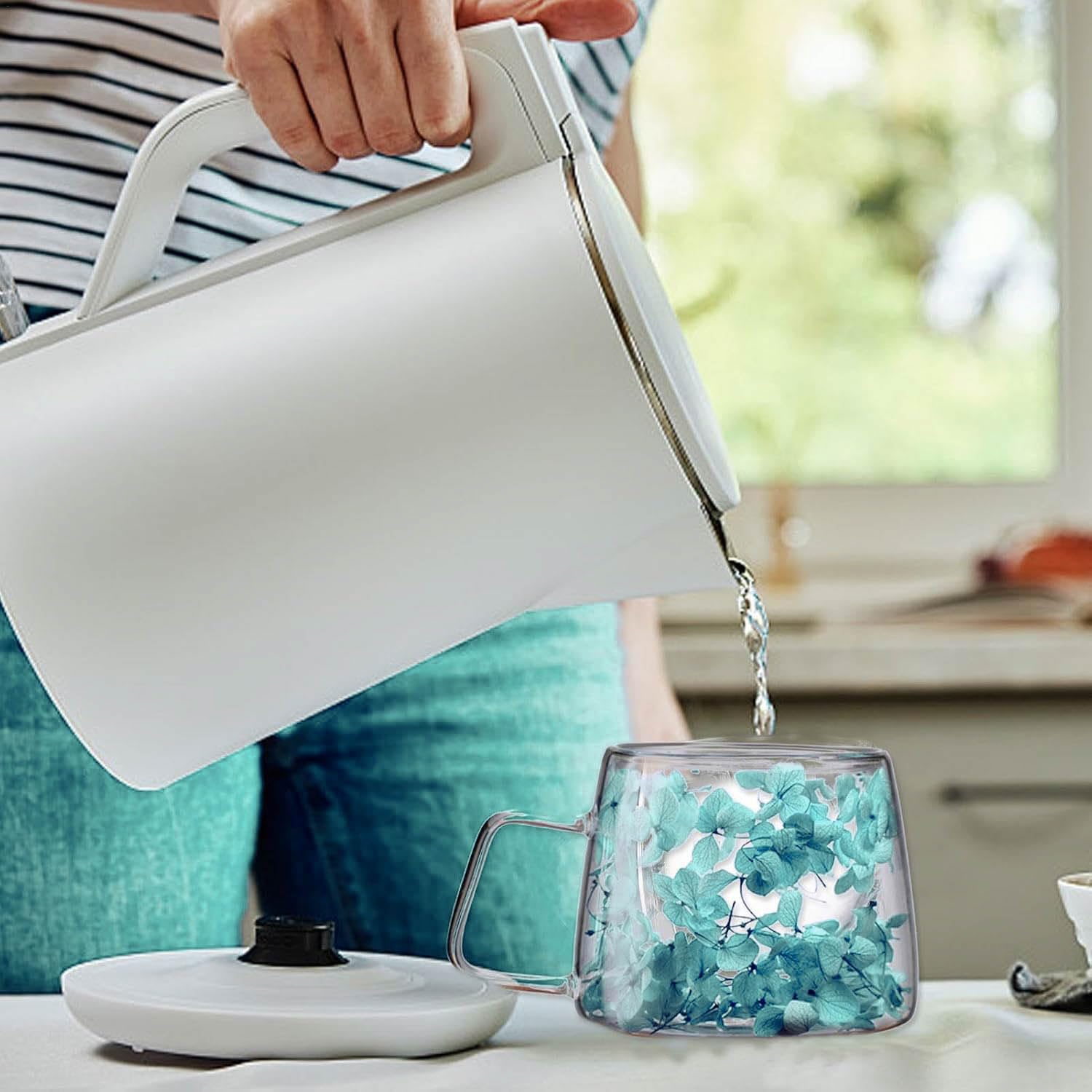 Because the flowers are natural and not artificially fixed, they may gently shift when the cup is moved, creating a beautiful “floating flower” effect that enhances the visual appeal.