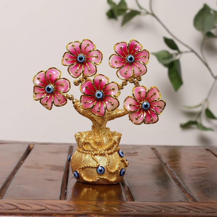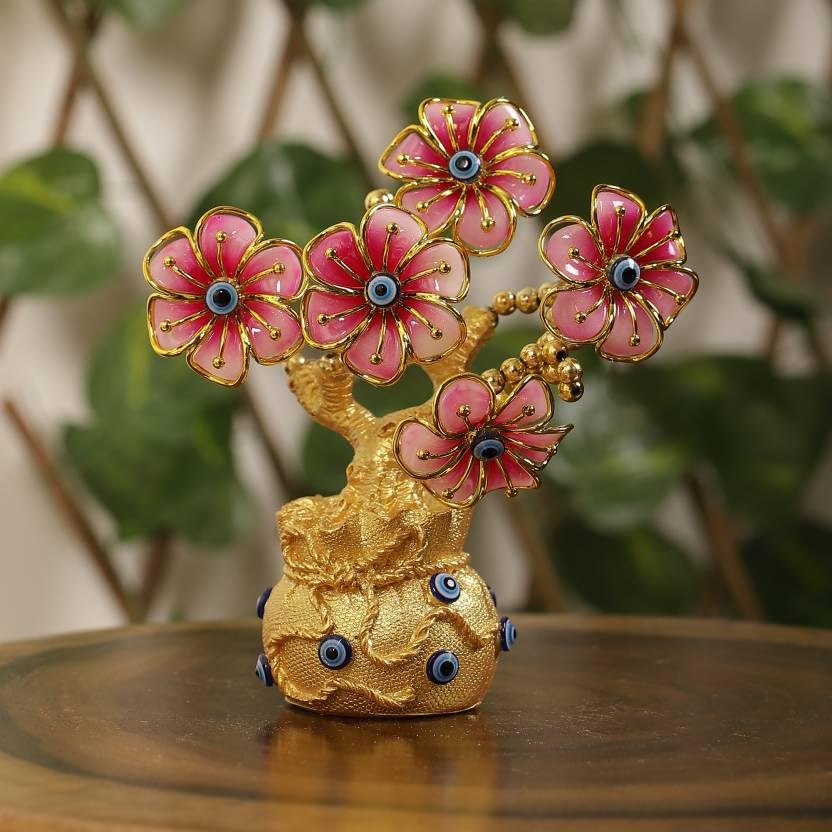 Crafted from high-quality resin, this Evil Eye Tree is designed to last for years without losing its shine or structure. The metallic golden base adds strength and stability, while the delicate floral details and embedded beads make it visually stunning from every angle.