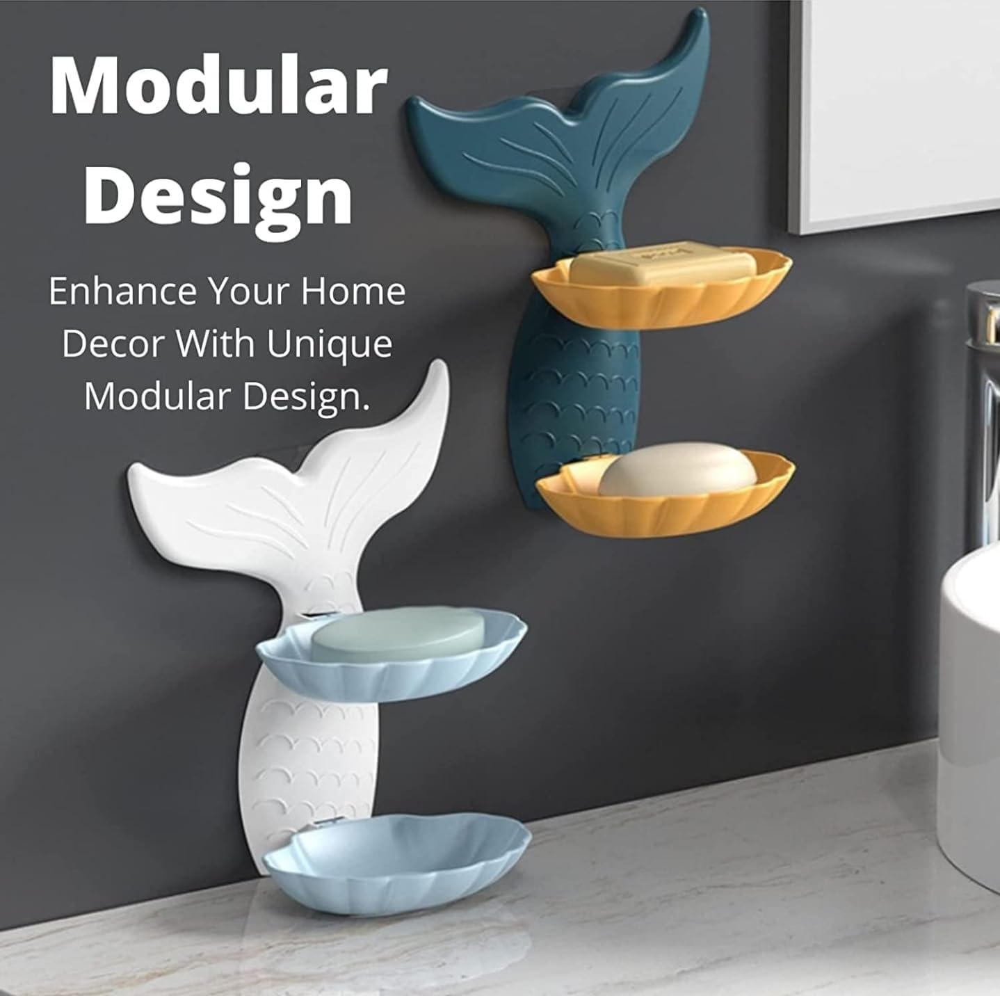 Fancy Kitchen Soap Holder – Mermaid Design, Dual Layer, Self-Adhesive Organizer for Kitchen & Bathroom