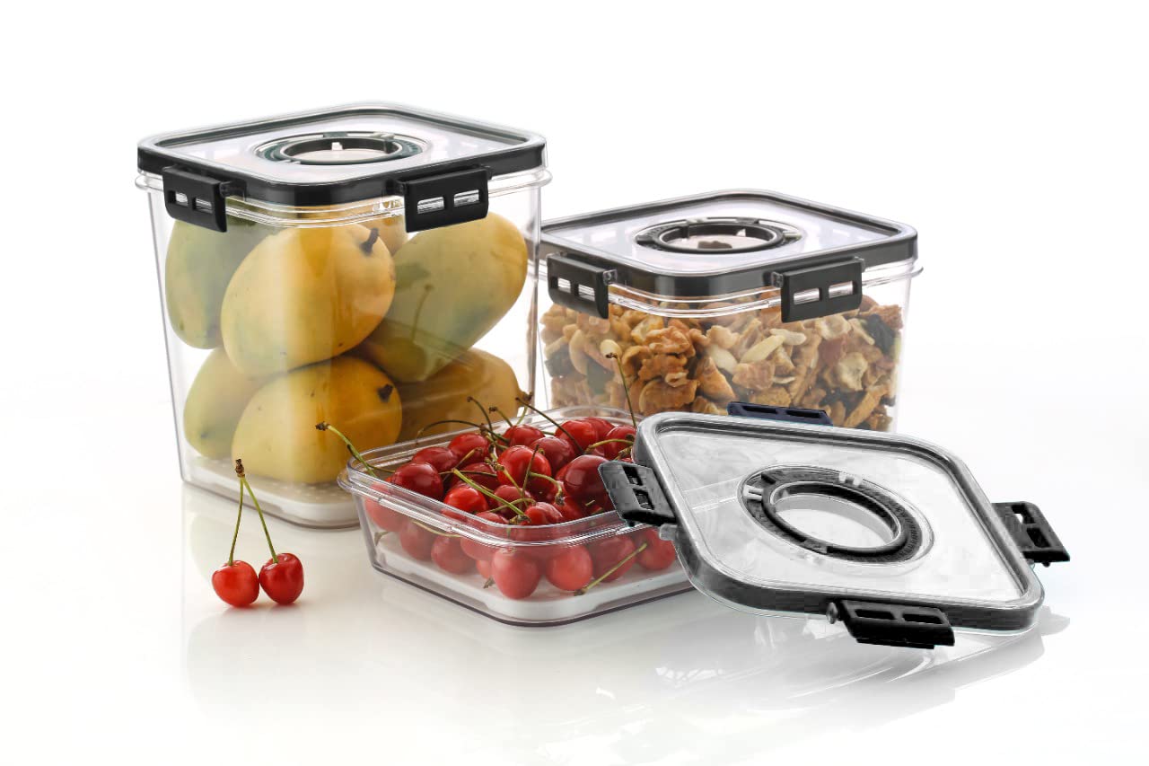 With its sleek design, transparent body, and innovative lid, this container is not only functional but also adds a modern touch to your kitchen.