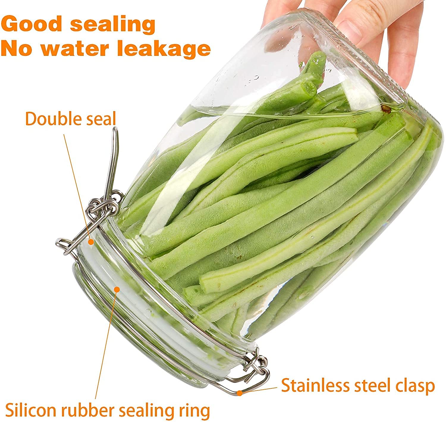 🔒 Airtight Food Storage Jar: Comes with a sealing cap and durable rubber gasket secured by a metal hinge hook. Ensures complete airtightness & leakproof protection ✅. Perfect for storing kimchi, olives, salmon, kombucha, homemade fruit wine 🍷, or any other fermented foods. Home canning keeps your meals fresh & healthy 🌱.