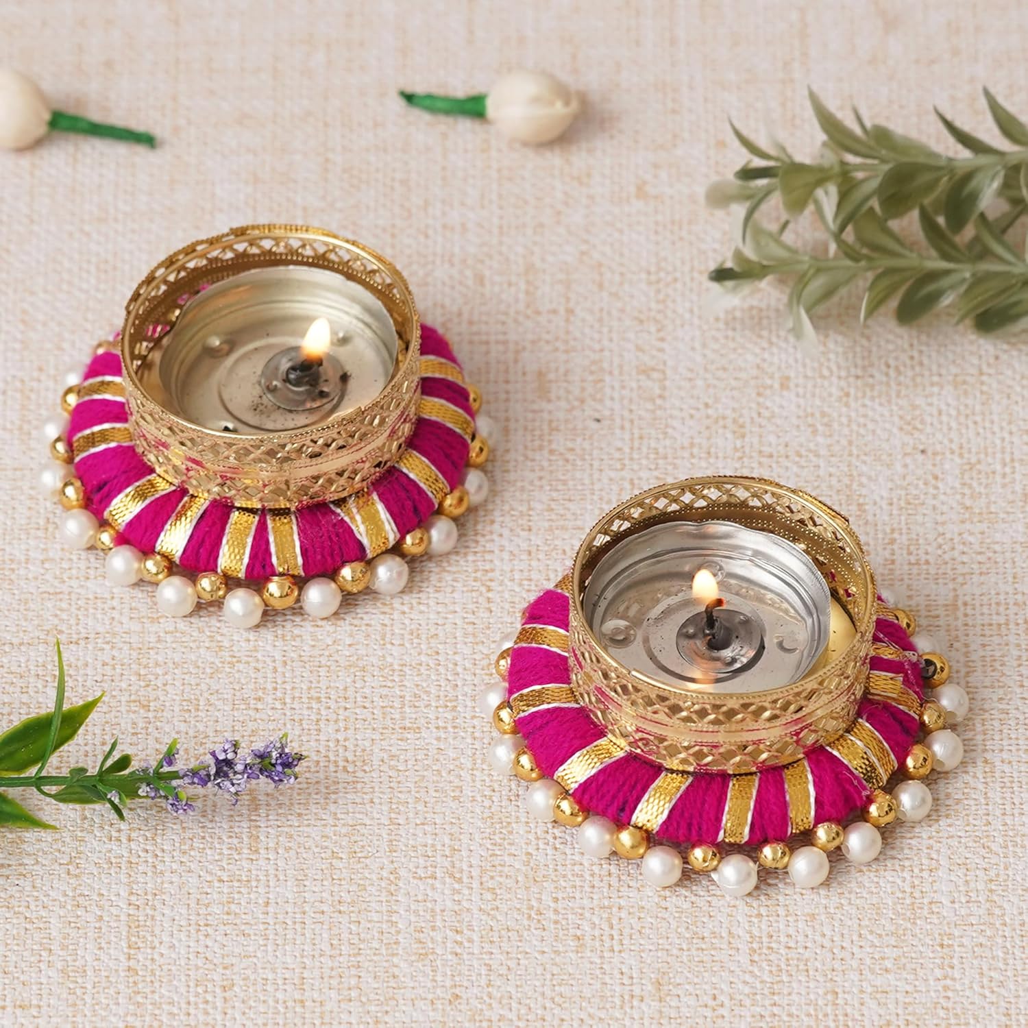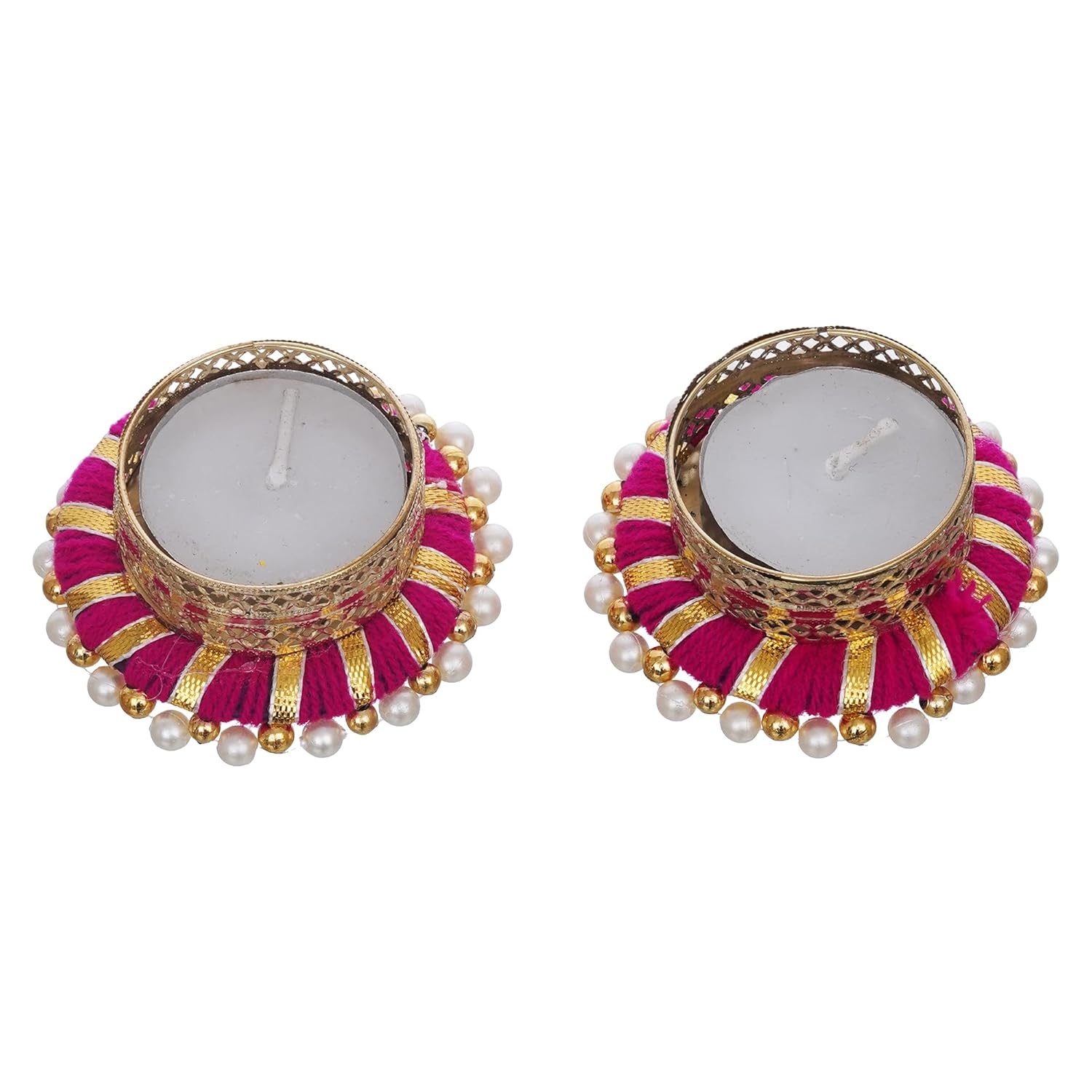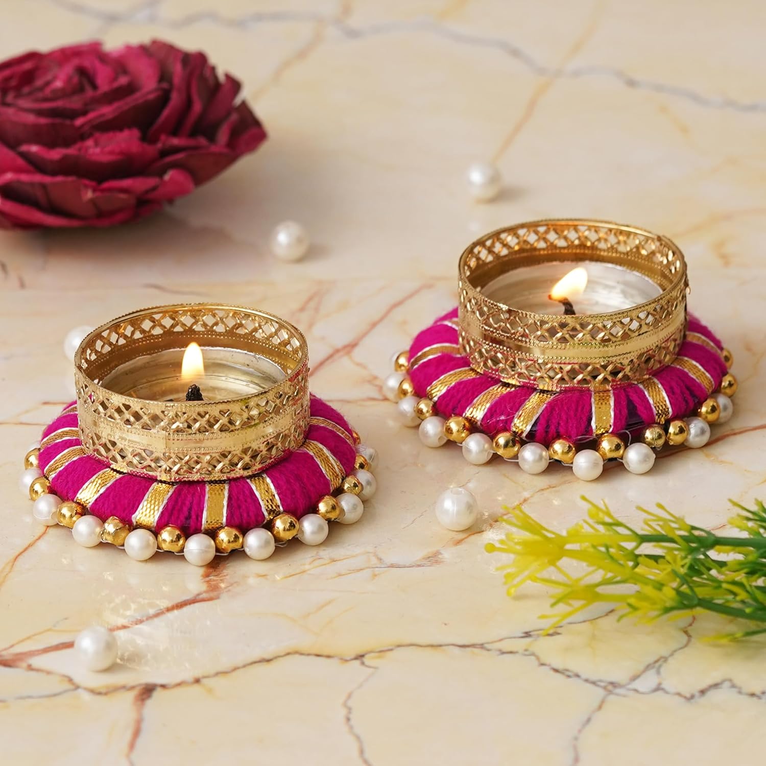 Illuminate your home with warmth, grace, and festive elegance using the Golden and Pink Decorative Tea Light Candle Holders. Designed to blend traditional charm with modern sophistication, these beautifully crafted metal candle holders add a radiant glow and luxurious accent to any interior. Perfect for festivals, daily décor, and special occasions, this elegant set enhances your space with soft candlelight and refined aesthetics.
