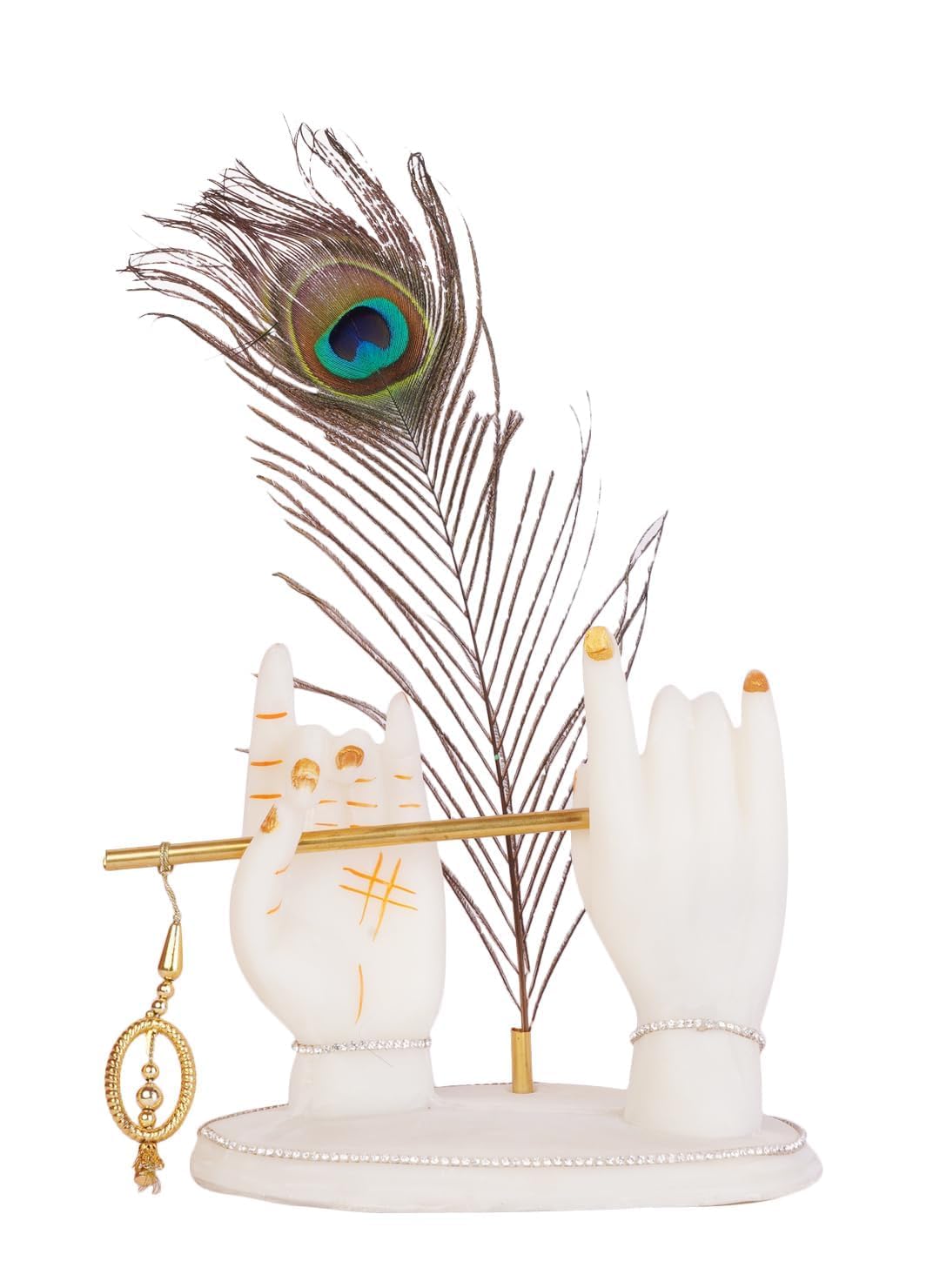 Handcrafted Krishna Ji Hands with Flute Figurine – White Antique Polyresin Statue for Elegant Home Décor