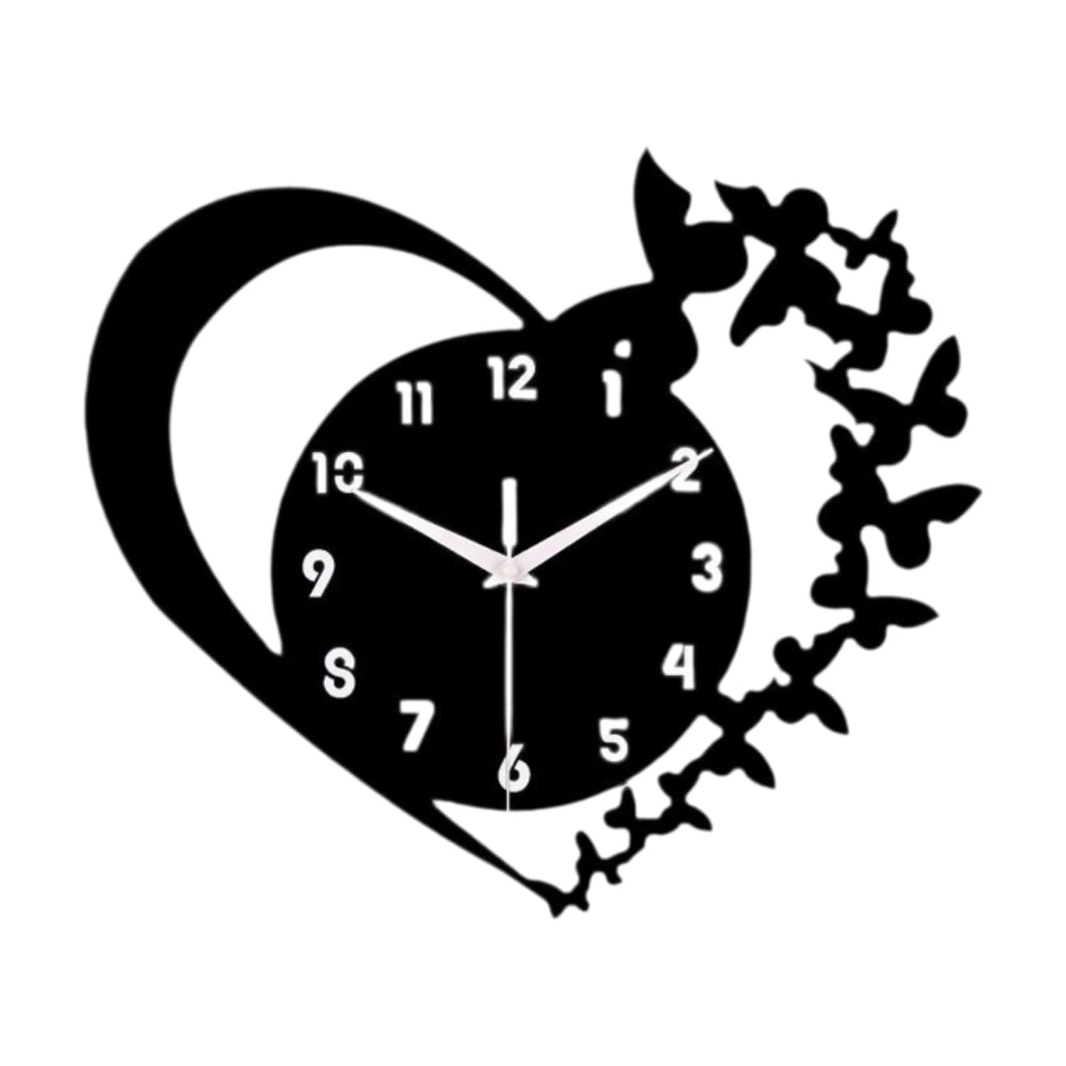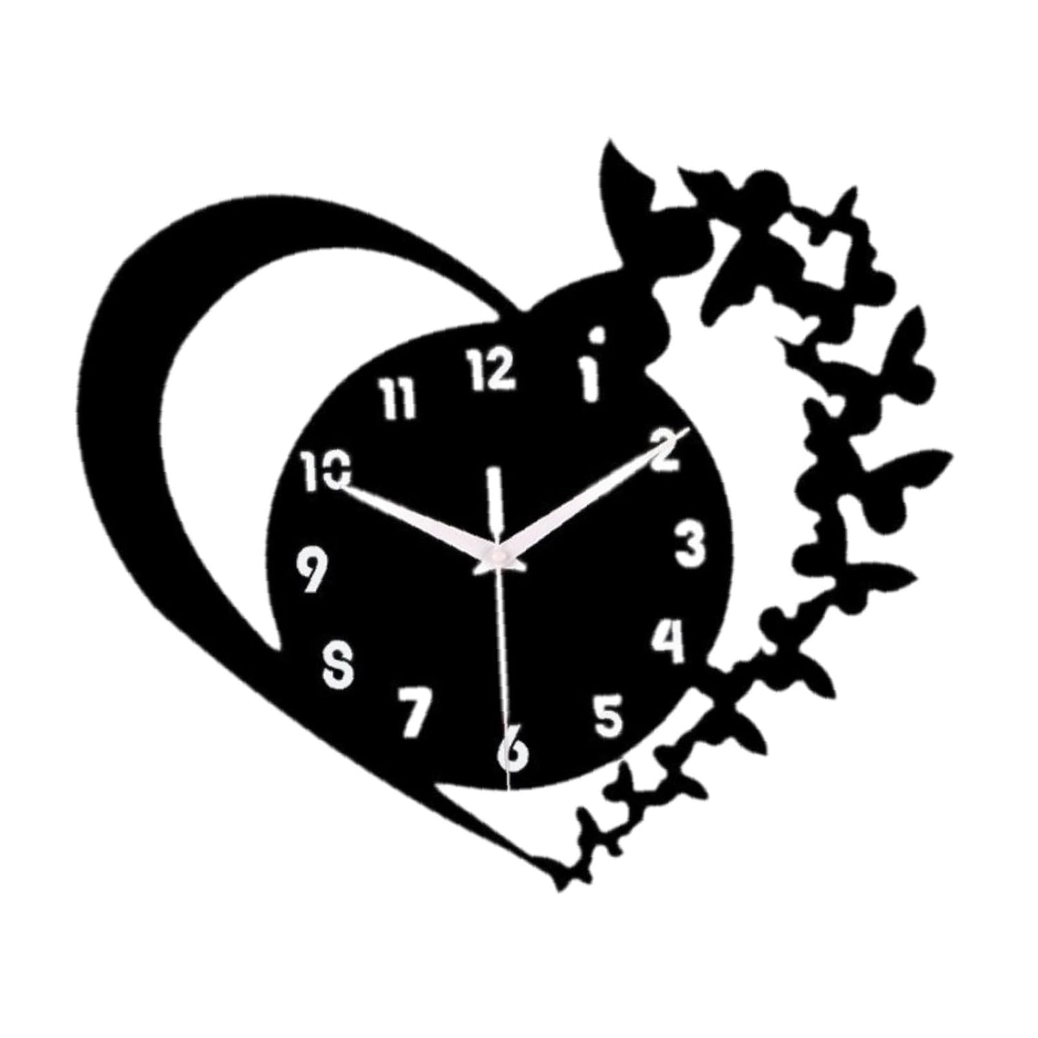 Premium Acrylic Material: Crafted from high-quality acrylic, this heart butterfly wall clock is sturdy, lightweight, and easy to clean, making it suitable for long-term indoor use.