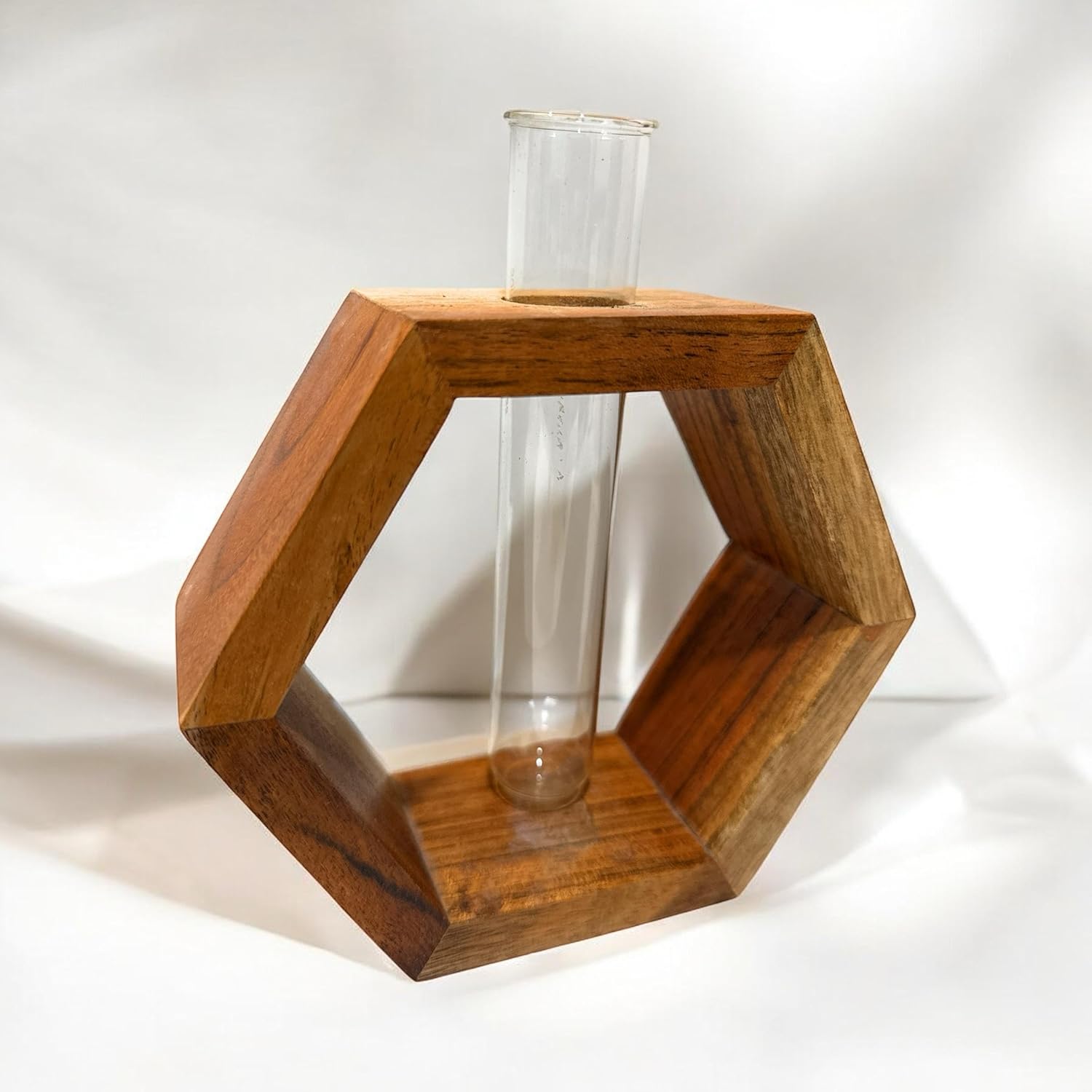Product  Hexagonal Wooden Vase with Single Glass Test Tube