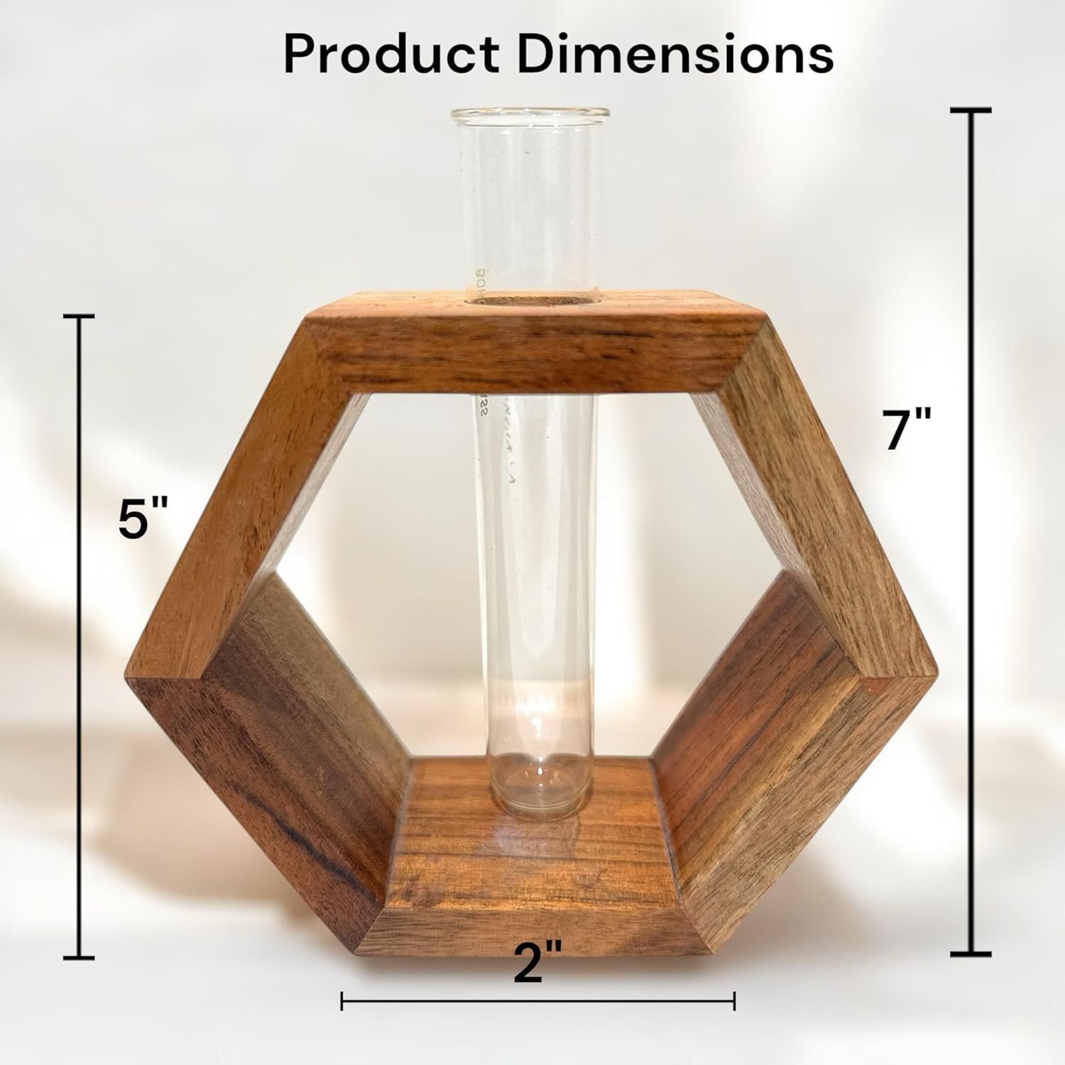 Enhance your interior décor with this elegant hexagonal vase, designed to add a contemporary and minimalist touch to any space. The geometric wooden-finish structure paired with a transparent glass test tube creates a stylish hydroponic planter ideal for modern homes.