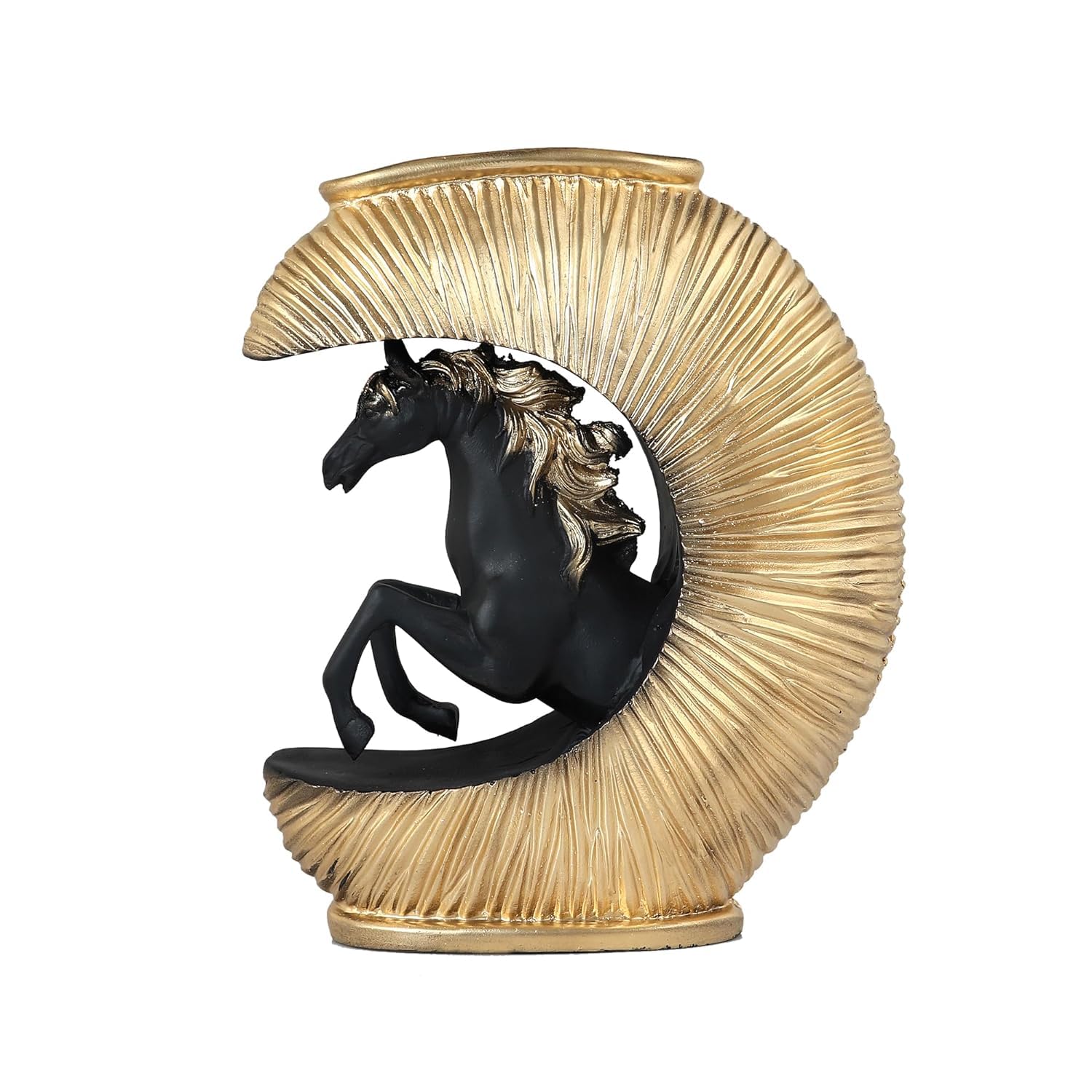 Made from high-quality resin, this horse showpiece cum flower vase is designed for durability and longevity. Resin is known for its strength, resistance to cracks, and ability to retain fine detailing, making it ideal for decorative items.