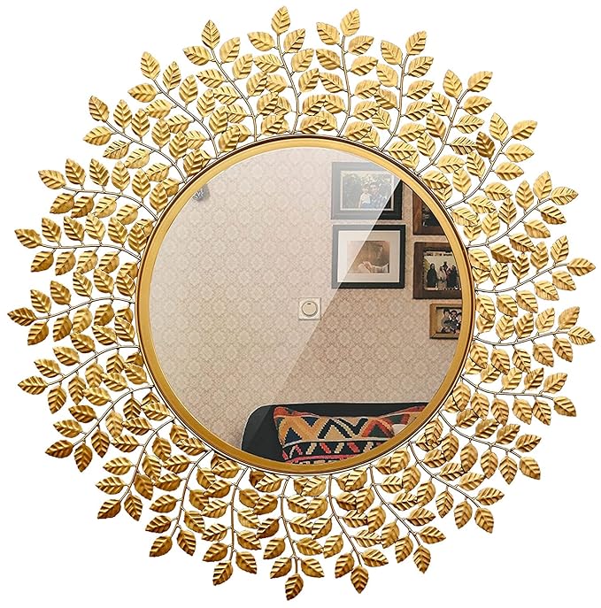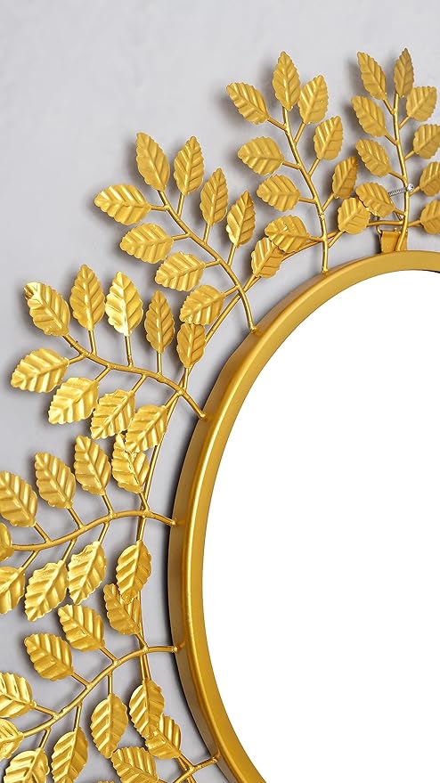 Mirrors have always been more than just reflective surfaces. They are timeless décor elements that add elegance, create an illusion of space, and enhance the beauty of any interior. The Iron Framed Decorative Wall Mounted Round Hanging Mirror with Stems and Leaves Design is a perfect blend of style, durability, and functionality. Crafted with a golden iron frame and adorned with delicate botanical motifs, this round mirror transforms a simple wall into a statement piece of art. Whether you are styling your home, office, or gifting it to a loved one, this mirror brings luxury and sophistication to every space.