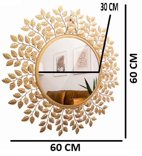 The standout feature of this mirror is its eye-catching iron frame with stems and leaves detailing. The golden finish gives it a royal and contemporary appeal, while the round shape maintains simplicity and balance. Every element of the design is thoughtfully crafted to suit modern homes that appreciate both minimalism and decorative accents.