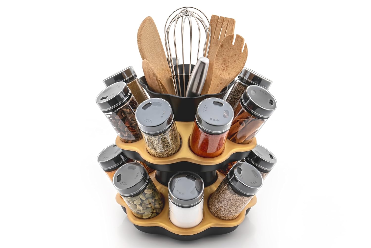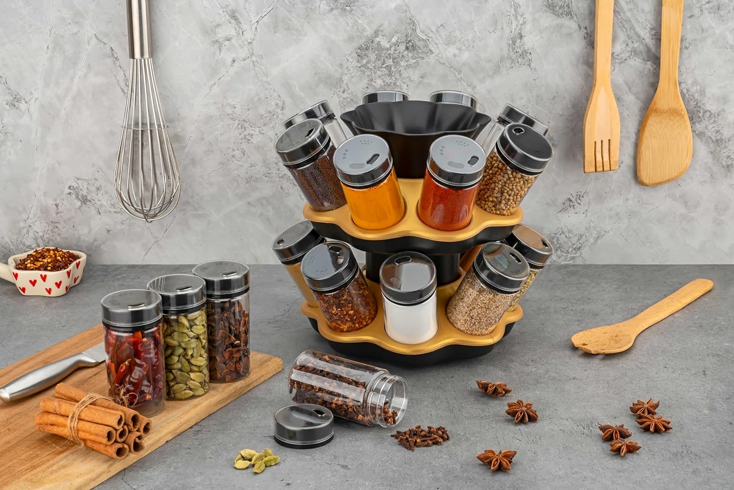 Smart Revolving Base Design – The specially designed rotating base allows smooth 360-degree movement, enabling quick and effortless access to all spice jars during cooking.