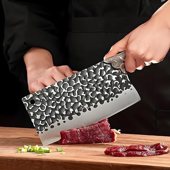 Its balance and weight distribution make it ideal for repetitive kitchen tasks, reducing effort and ensuring safety. Unlike mechanically produced knives, this forged cleaver is built for longevity, providing years of reliable use without dulling quickly.