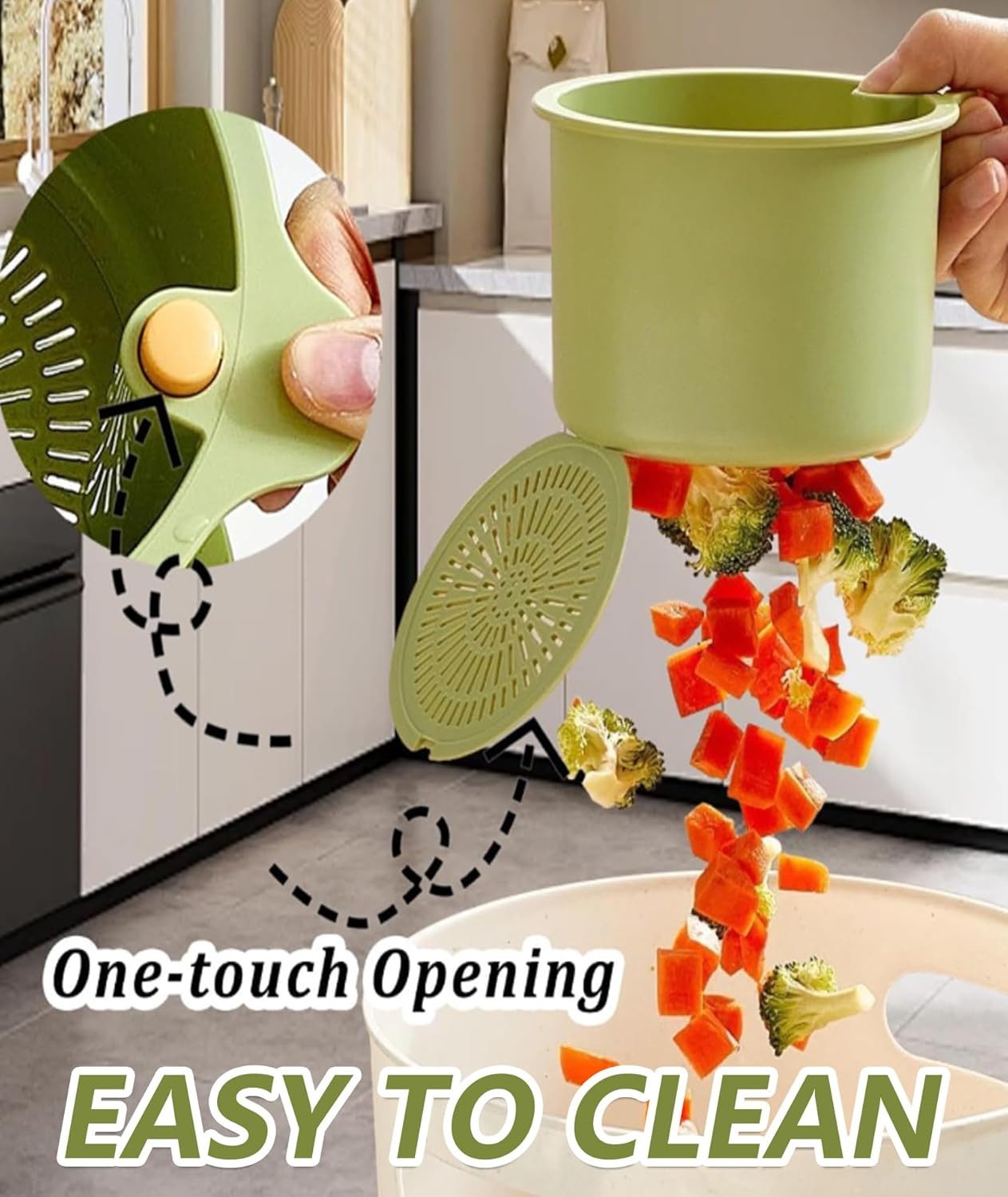 Just lift it, empty the waste, and rinse it under running water. The smooth texture prevents dirt or residue buildup, ensuring your basket looks as good as new even after prolonged use. It’s also resistant to stains and discoloration — perfect for daily use in busy kitchens.