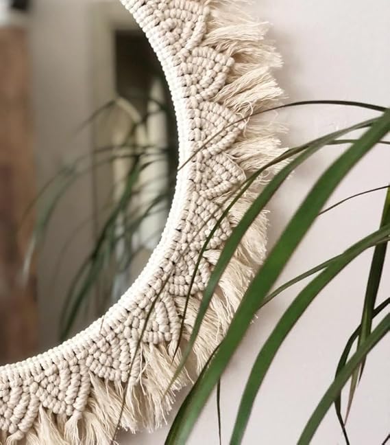 The mirror is made with high-quality cotton rope and a sturdy glass center, combining aesthetic appeal with durability. The handwoven design ensures that the frame maintains its shape and structure over time, while the fringe tassels retain their softness and texture. This makes it a lasting investment for your home decor, allowing you to enjoy the beauty of bohemian style for years to come.