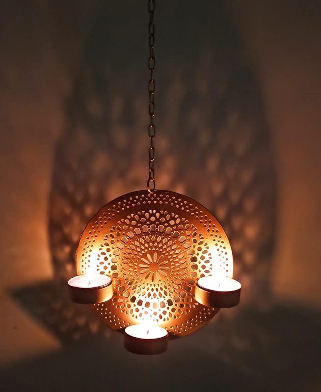 The highlight of this Metal Decorative Hanging Laser Diya is its finely detailed laser-cut design. Each pattern is precisely crafted to allow candlelight to pass through beautifully, creating mesmerizing light and shadow effects on surrounding walls and surfaces. When a tea light is lit, the glow gently diffuses through the cutwork, producing a warm, inviting ambiance that enhances the décor of any setting.