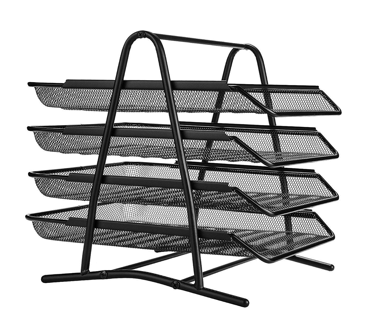 Declutter your desk or workspace with this 4-tier metal mesh organizer. With four separate storage levels, it allows you to neatly store frequently used files, documents, folders, and paperwork in an organized manner.