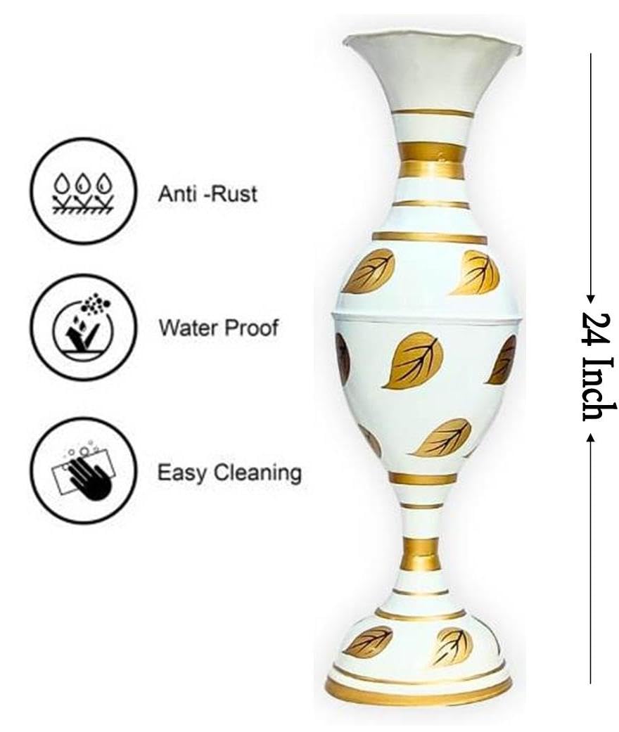 The Metal Flower Vase with Leaf Paint Design is more than just a decorative accessory—it is a statement piece crafted to elevate your interiors with elegance, sophistication, and timeless charm. Designed with a tall cylindrical silhouette and finished in a minimalistic white tone, this vase captures the essence of modern décor while adding a refreshing artistic touch. Whether placed in your living room, bedroom, hallway, office, or reception area, it instantly enhances the visual appeal of any space.